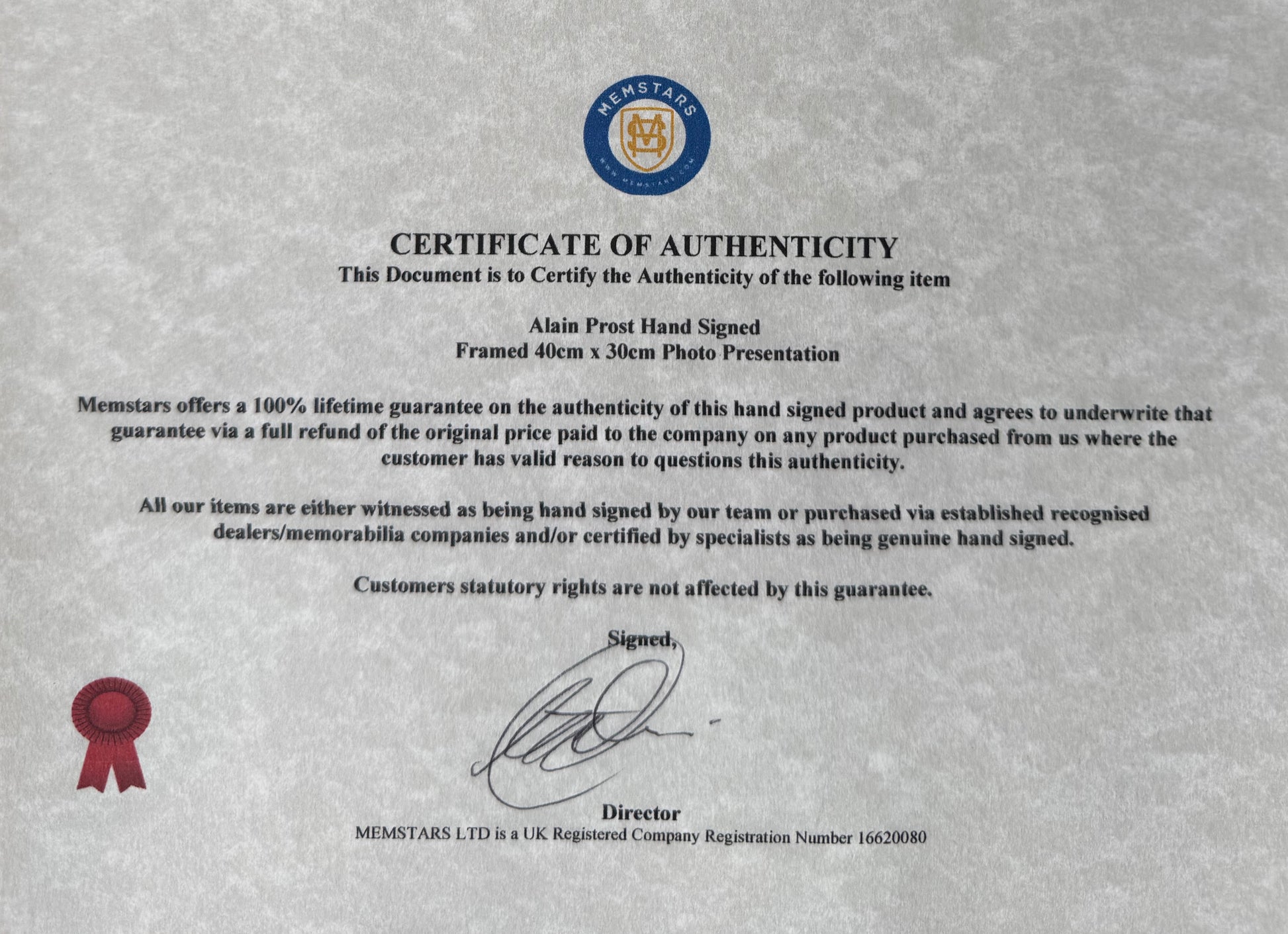 We only sell 100% genuine HAND SIGNED authentic memorabilia with Certificates of Authenticity.
