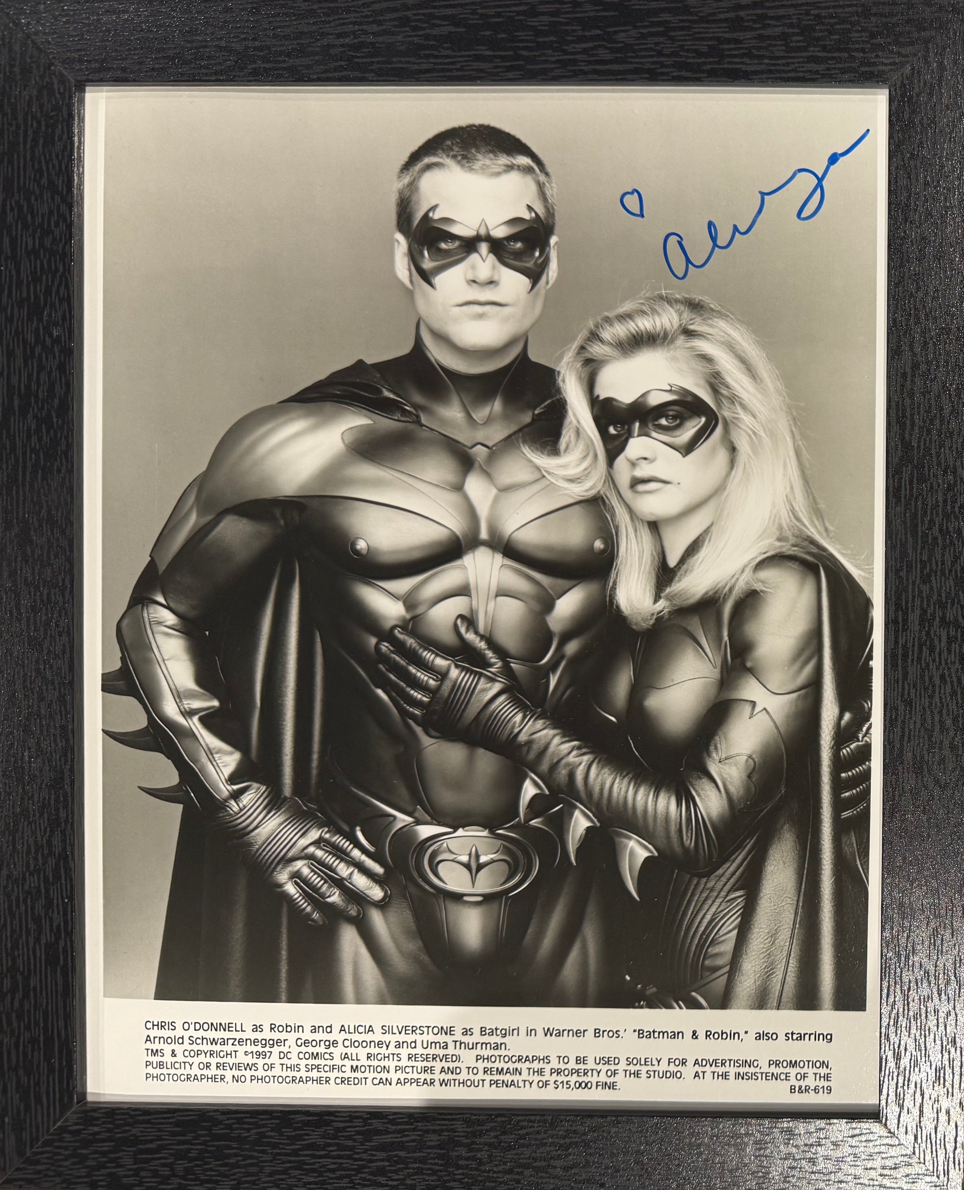 Alicia Silverstone, Genuine Guaranteed Hand Signed Framed (25cm x 20cm) 'Batman and Robin' Photo Presentation - With COA - Certificate of Authenticity.