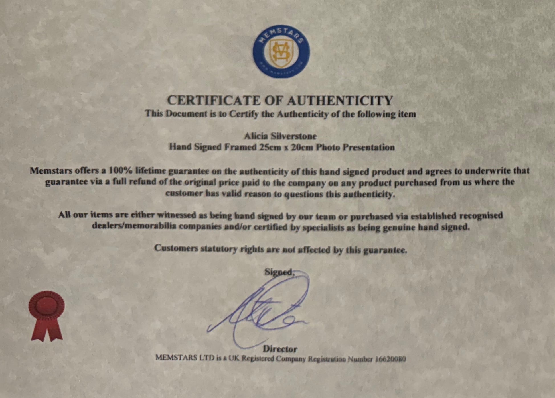 We only sell 100% genuine HAND SIGNED authentic memorabilia with Certificates of Authenticity Guaranteed by us and/or AFTAL Members.