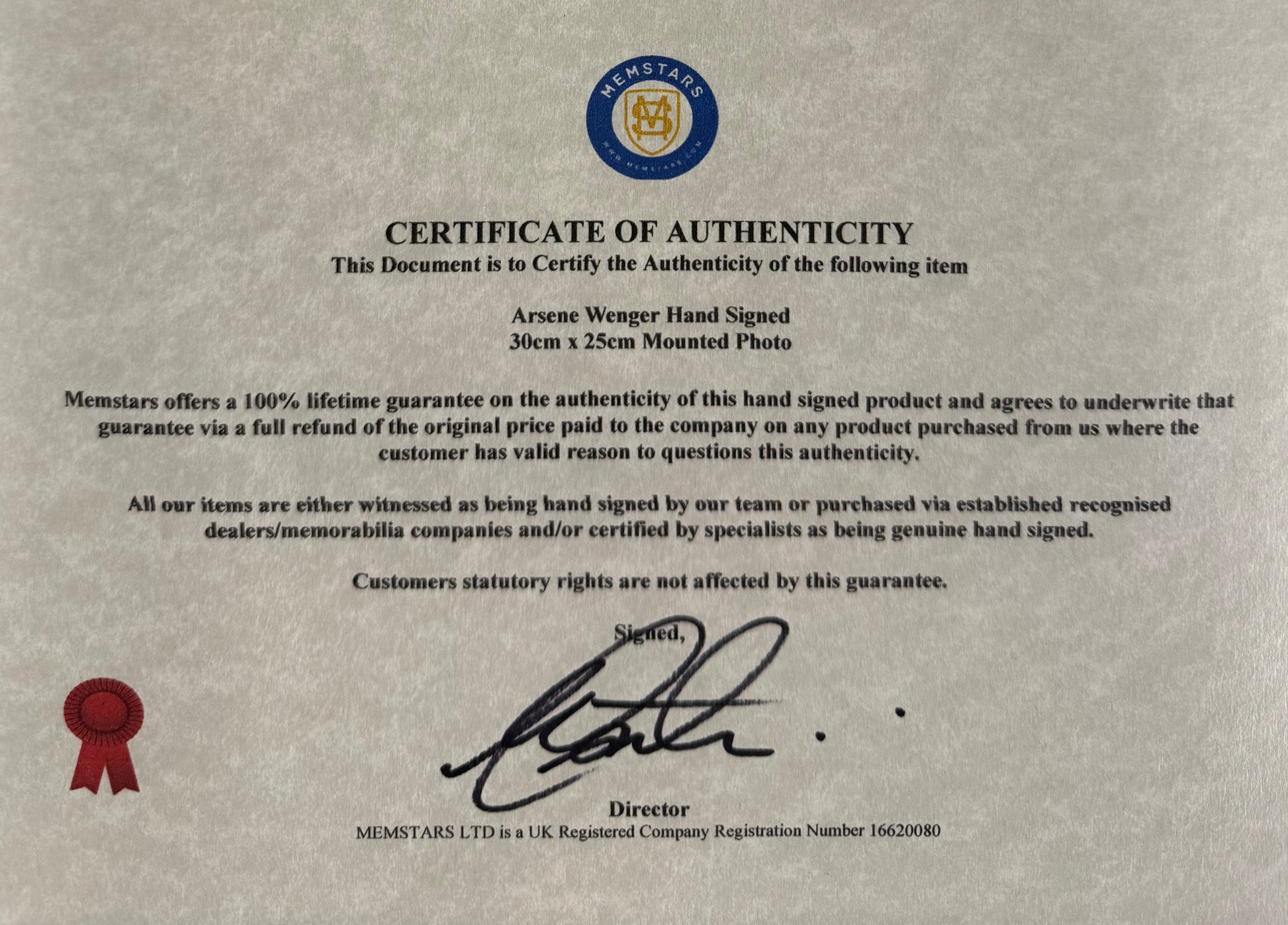 An incredible opportunity to purchase this Hand Signed Photo signed by arguably one of the greatest managers of all-time, Arsene Wenger.