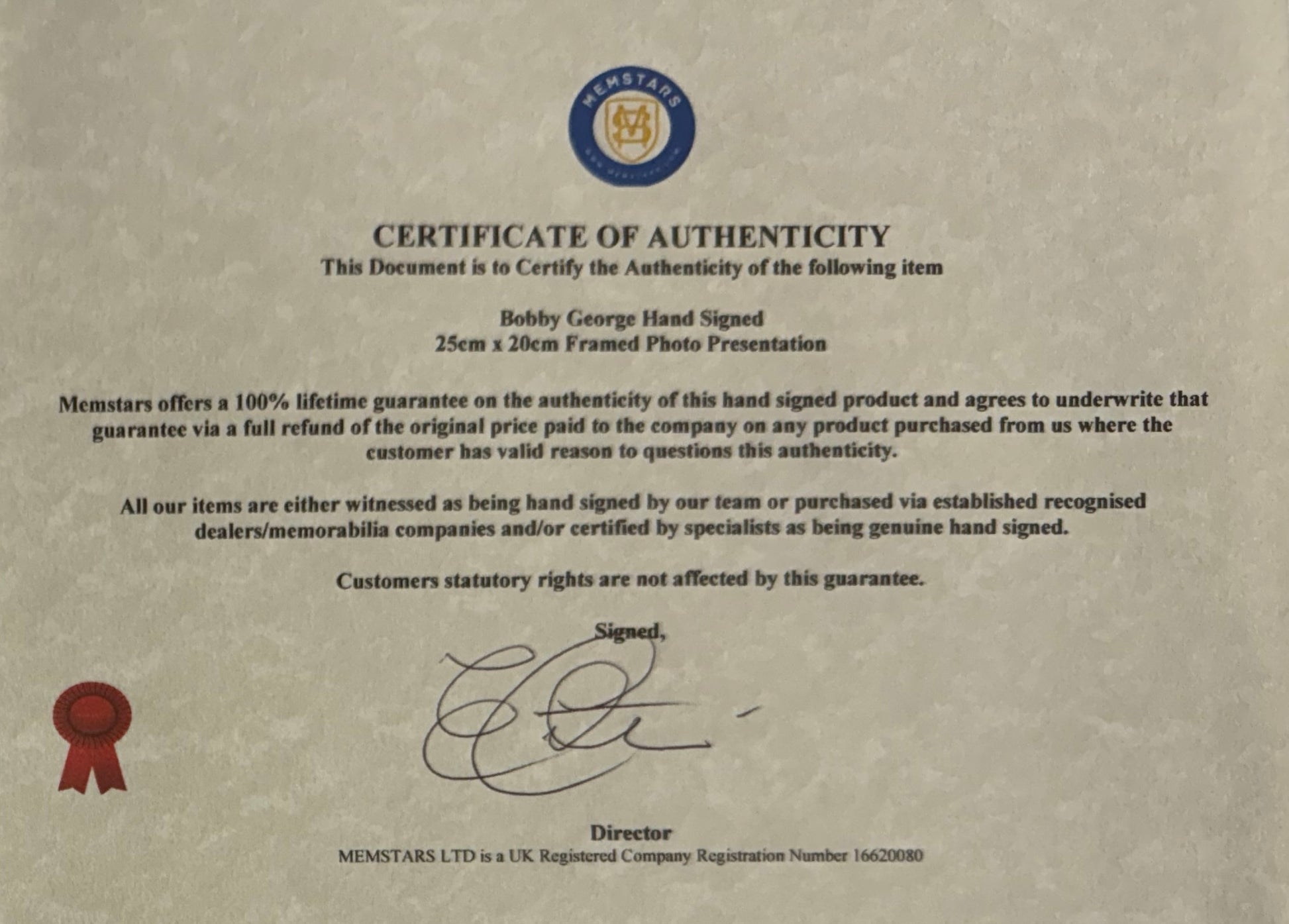 We only sell 100% genuine hand signed authentic memorabilia with Certificate's of Authenticity.