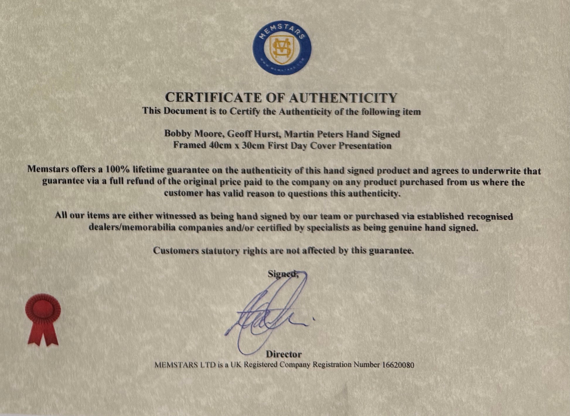 Moore, Hurst, Peters, West Ham United Legends Guaranteed Hand Signed First Day Cover Presentation & COA