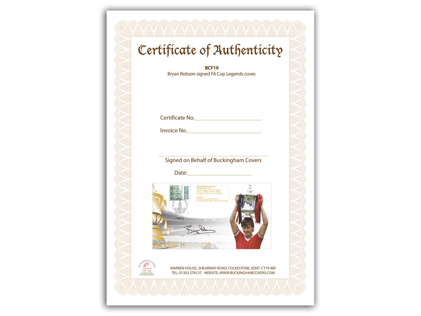Bryan Robson - Manchester United Legend - 100% Original Genuine Hand Signed Professionally Framed (40cm x 30cm) ‘Buckingham’ Limited Edition (only 150 produced globally) First Day Cover (FDC) - With Certificate of Authenticity (COA).