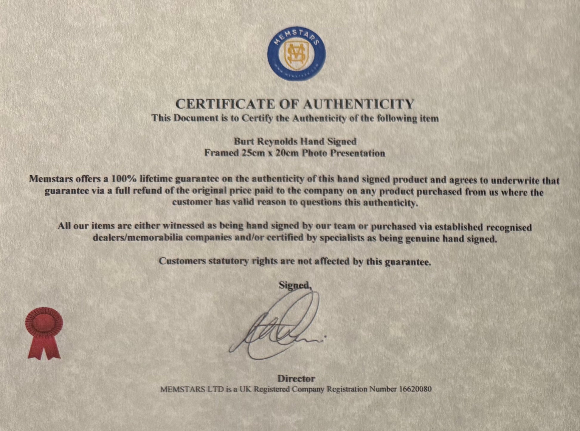 We only sell 100% genuine HAND SIGNED authentic memorabilia with Certificate's of Authenticity.