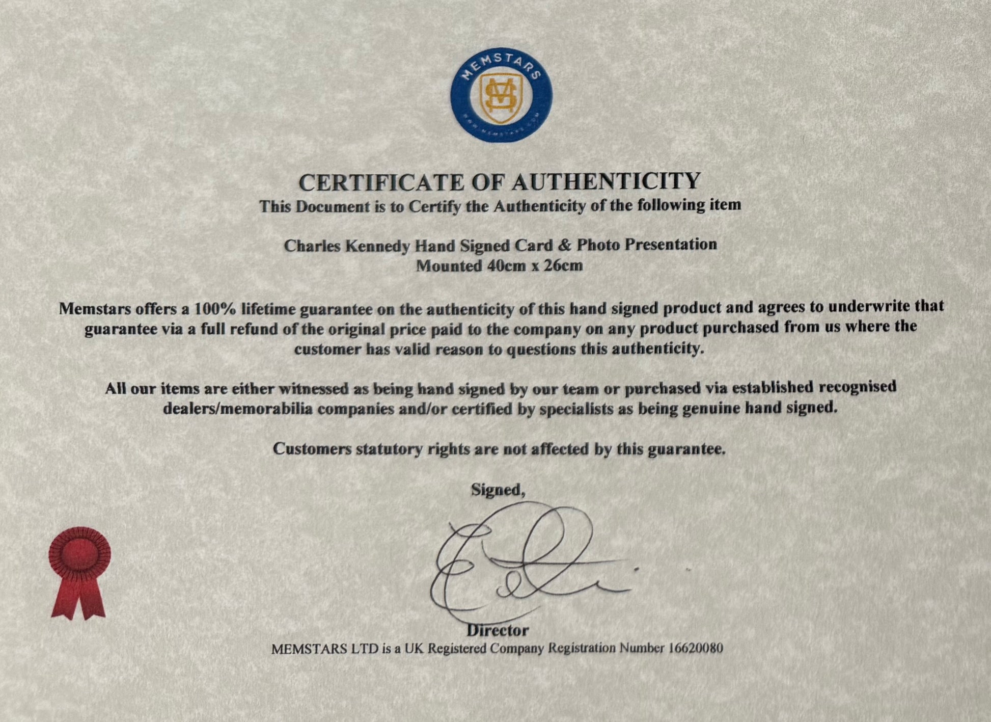 We only sell 100% genuine HAND SIGNED authentic memorabilia with Certificates of Authenticity from us and/or AFTAL members.