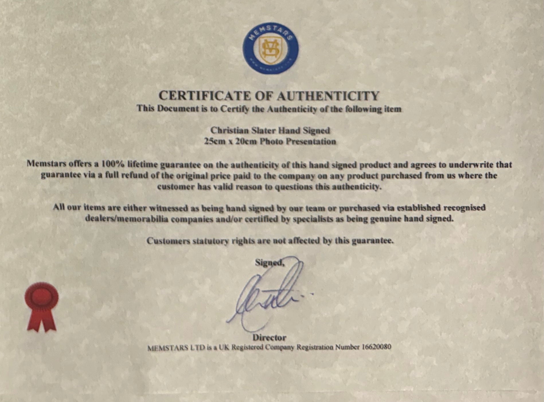 We only sell 100% genuine HAND SIGNED authentic memorabilia with Certificates of Authenticity underwritten by us and/or from AFTAL members.