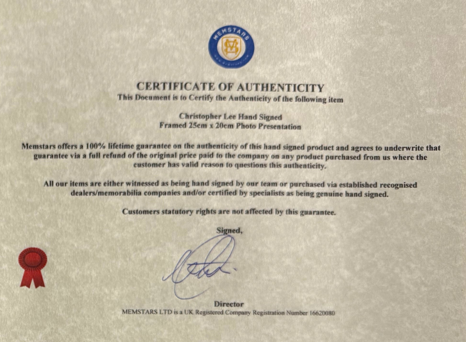 We only sell 100% genuine HAND SIGNED authentic memorabilia with Certificates of Authenticity.