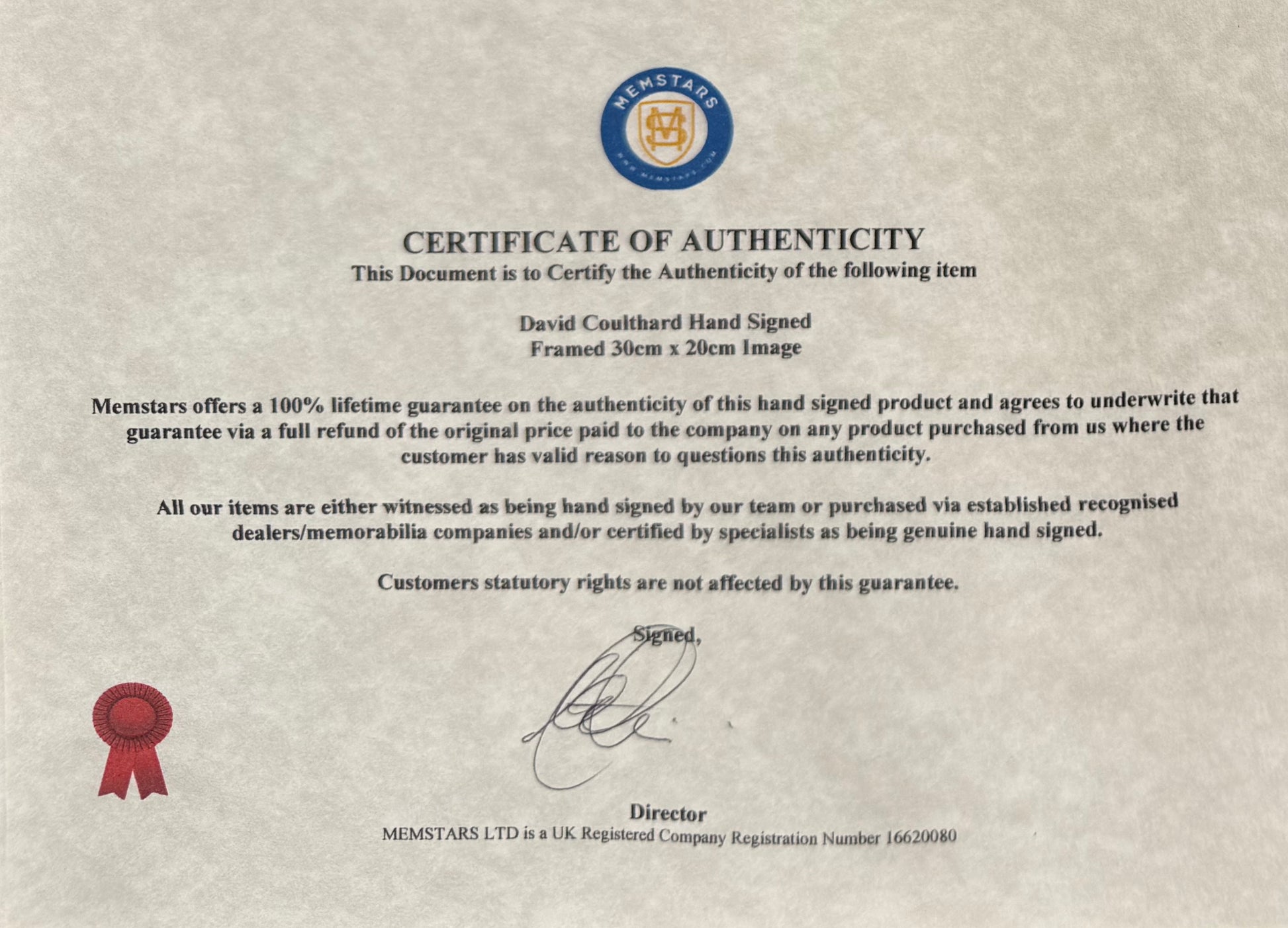 We only sell 100% genuine HAND SIGNED authentic memorabilia with Certificates of Authenticity us and/or from registered members.