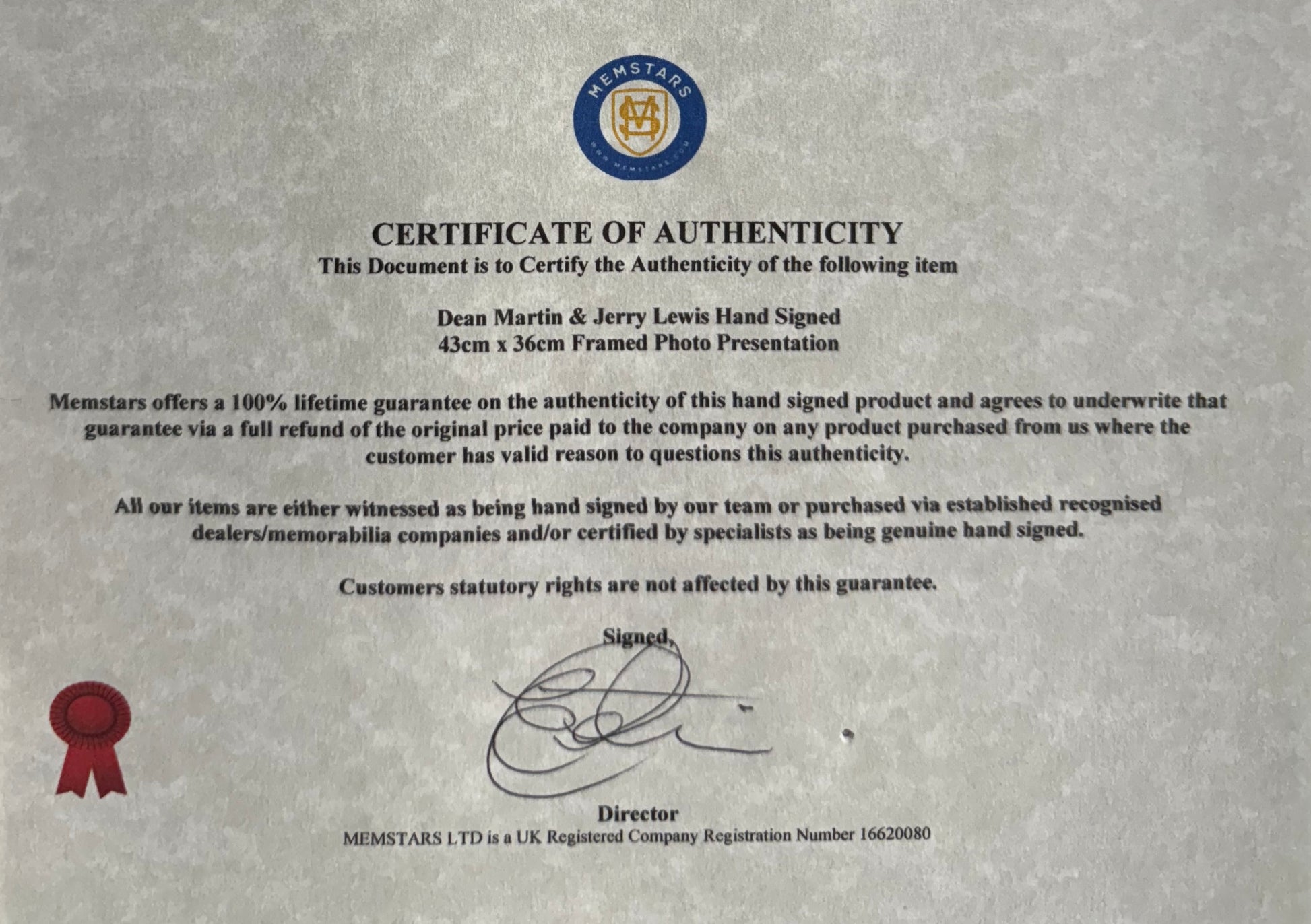We only sell 100% genuine HAND SIGNED authentic memorabilia with Certificates of Authenticity Guaranteed by us and/or UACC/AFTAL Members.