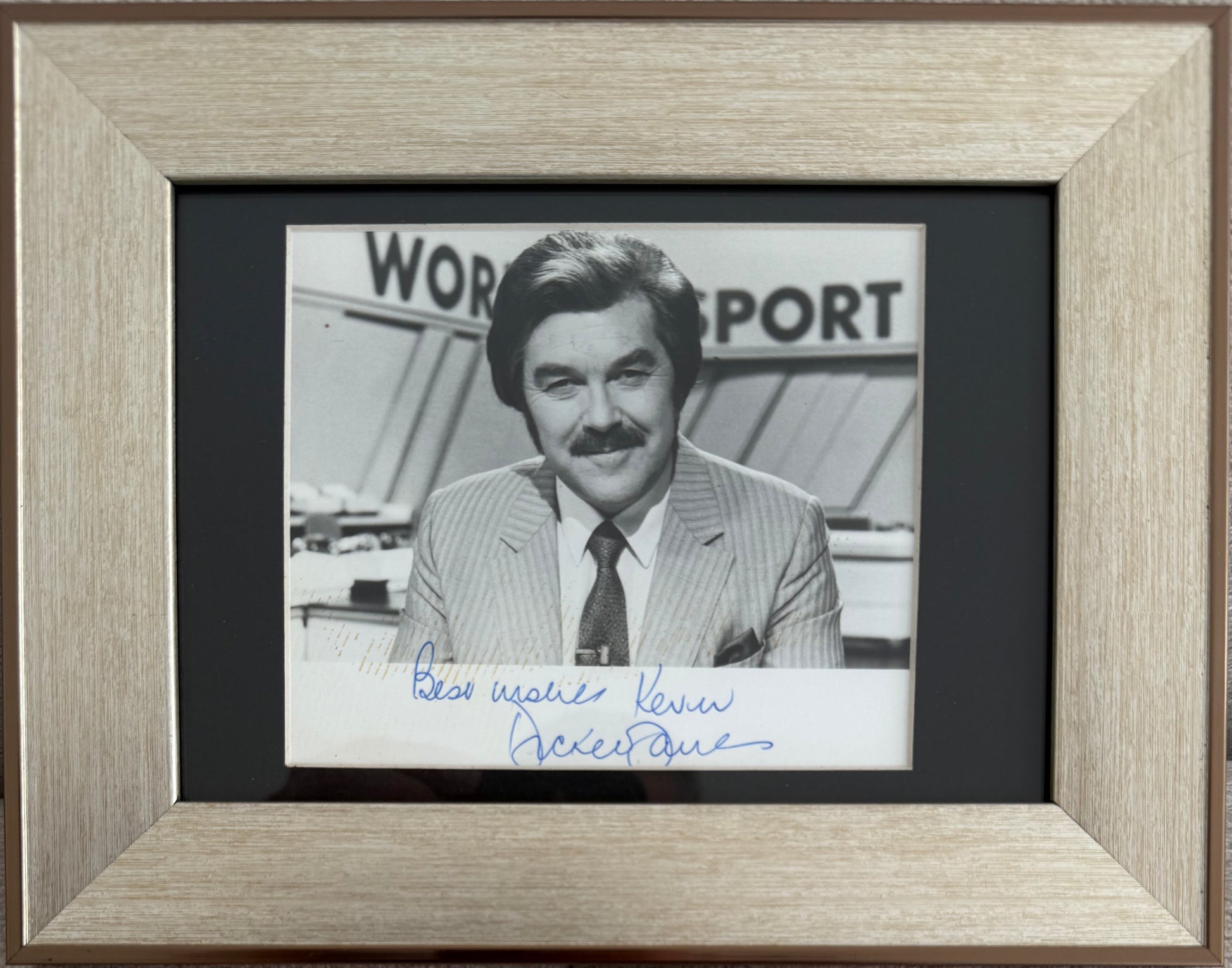 Dickie Davies, 'World of Sport' Presenting Legend, Hand Signed Framed Original Promo Card & COA