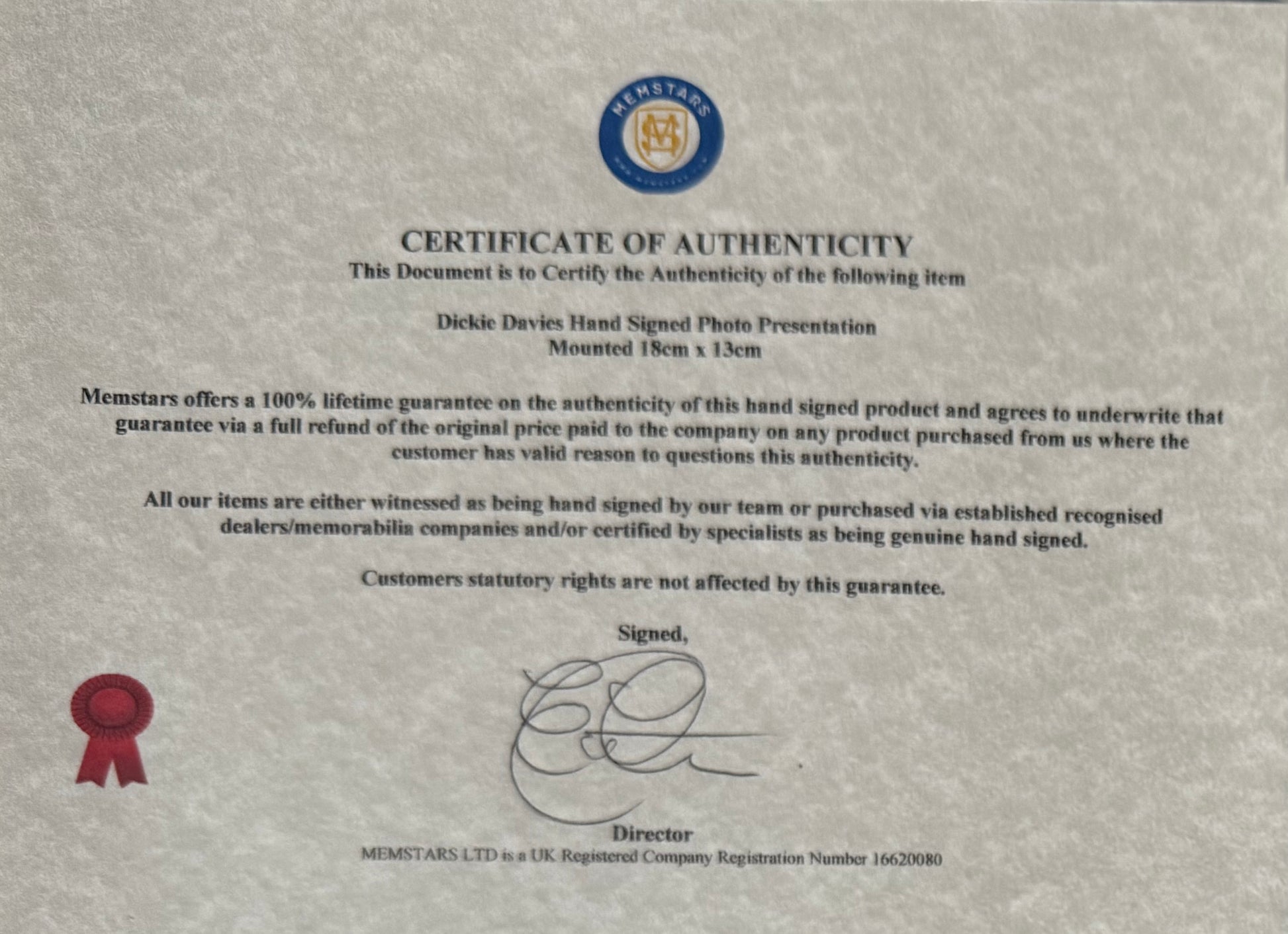 We only sell 100% genuine HAND SIGNED authentic memorabilia with Certificates of Authenticity and underwritten by us.