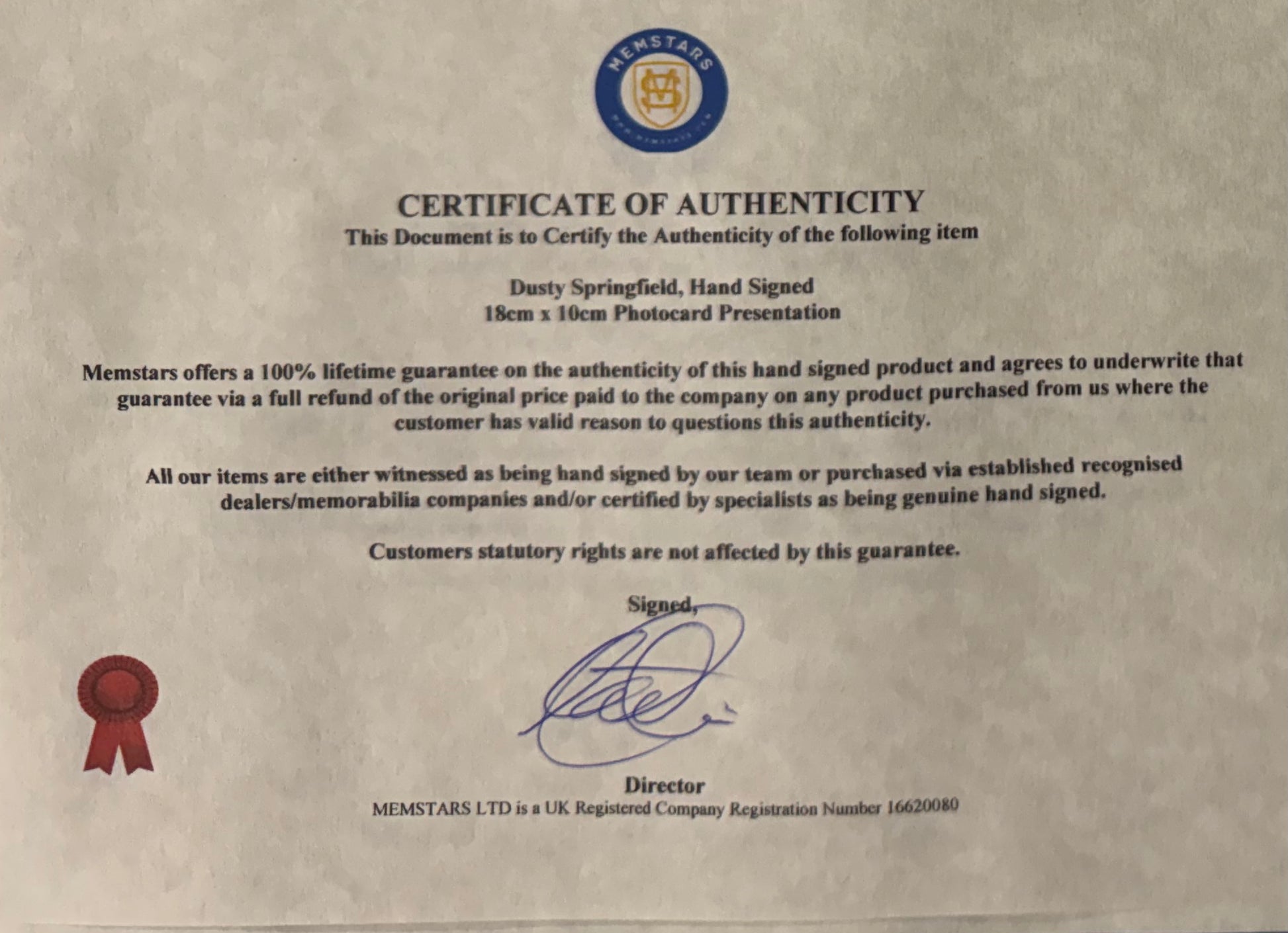 We only sell 100% genuine HAND SIGNED authentic memorabilia with Certificates of Authenticity.