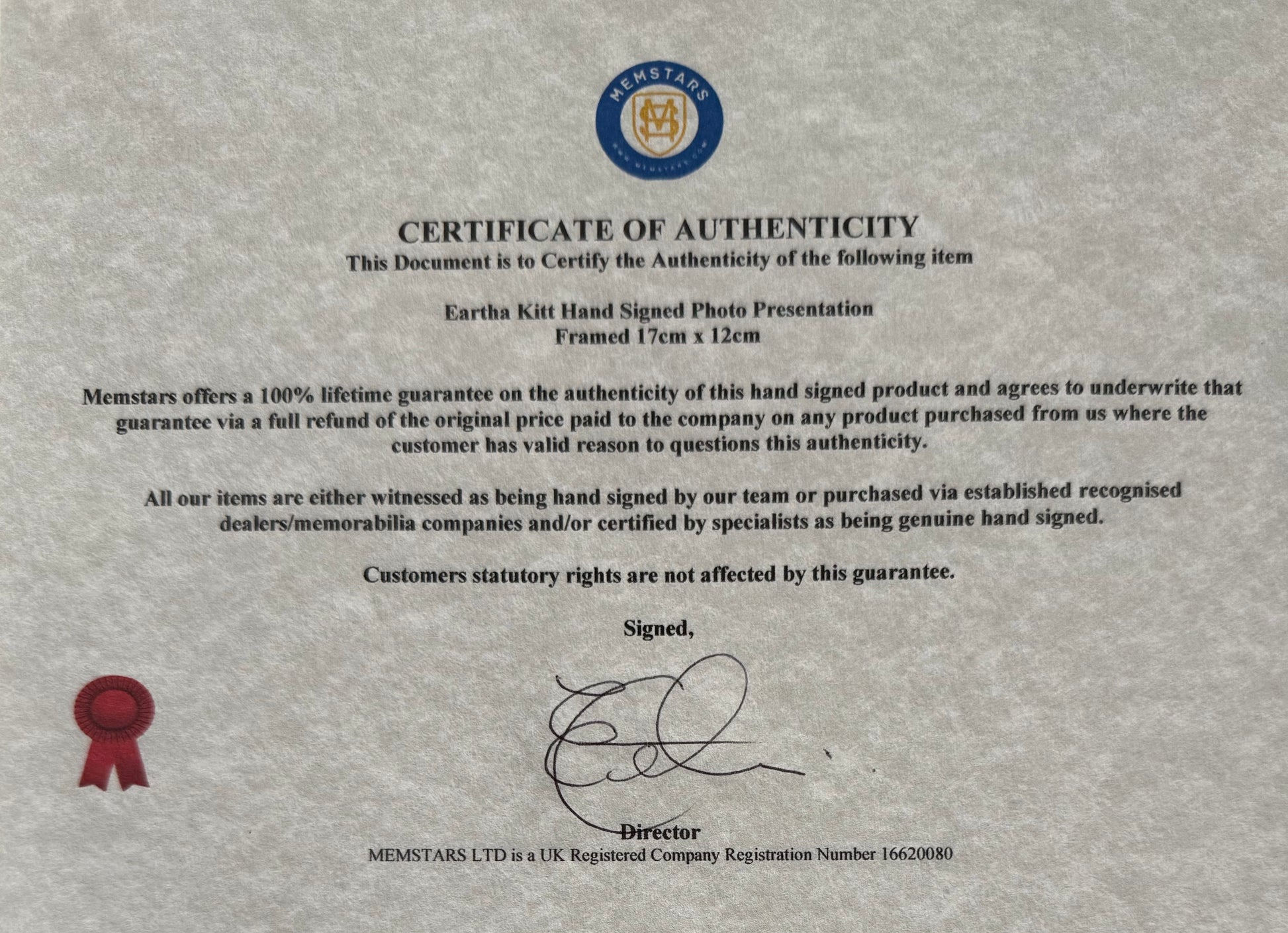 We only sell 100% genuine HAND SIGNED authentic memorabilia with Certificates of Authenticity.