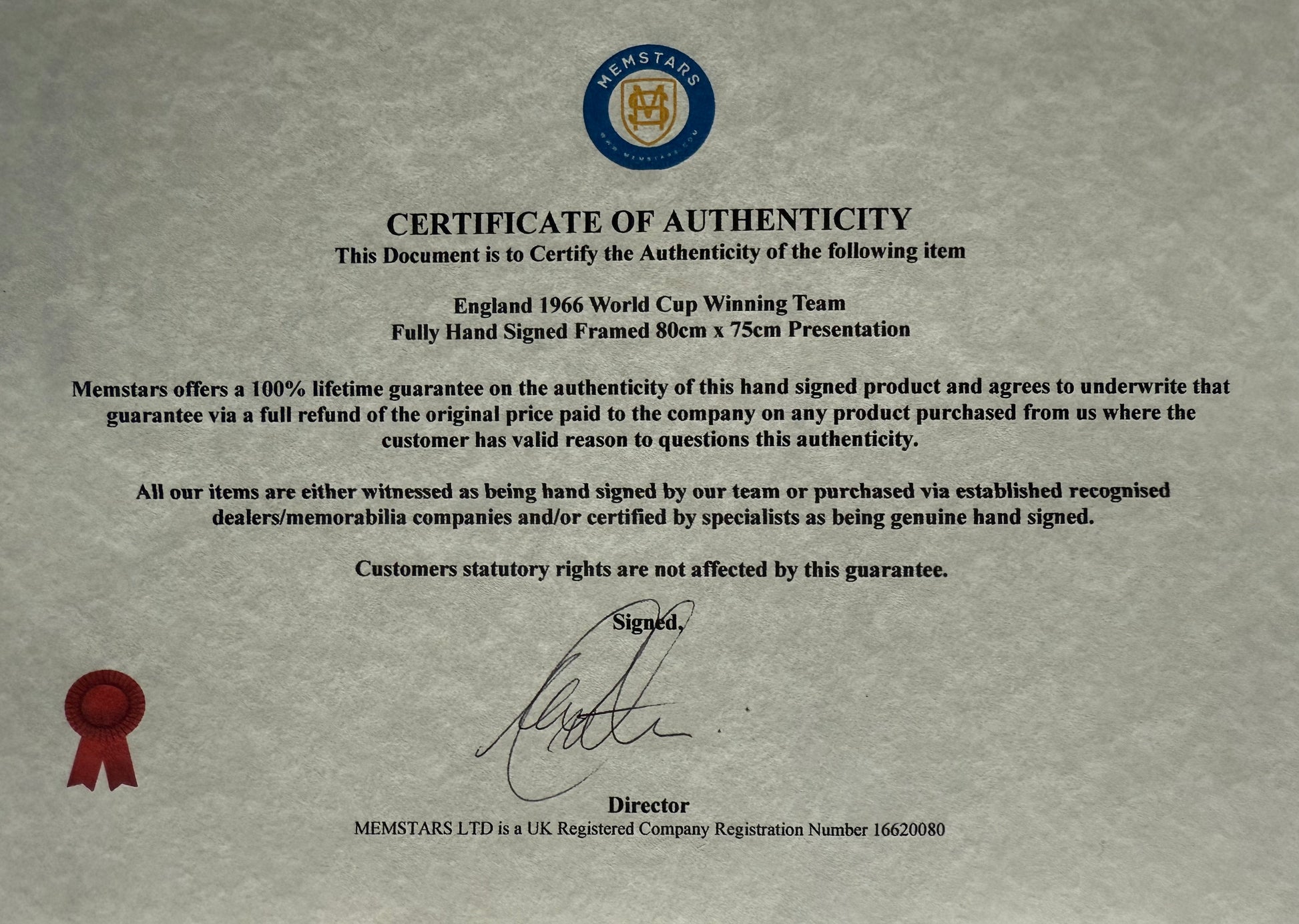 We only sell 100% genuine HAND SIGNED authentic memorabilia with Certificates of Authenticity.