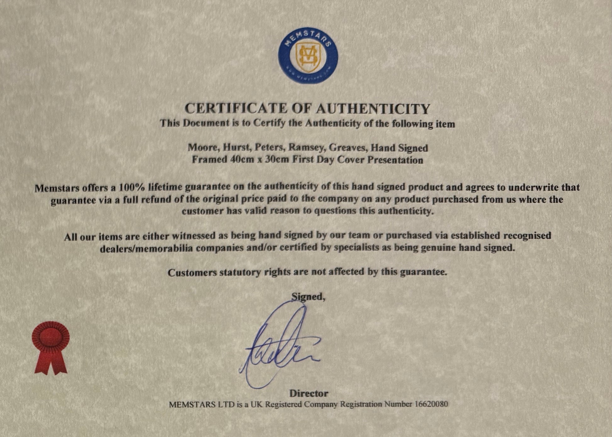 SUPER RARE & MULTI HAND SIGNED – Including Bobby Moore and Sir Alf Ramsey, England 1966 Heroes, Professionally Framed (40cm x 30cm) Genuine 100% Hand Signed First Day Cover (FDC) Presentation with COA - Certificate of Authenticity.
