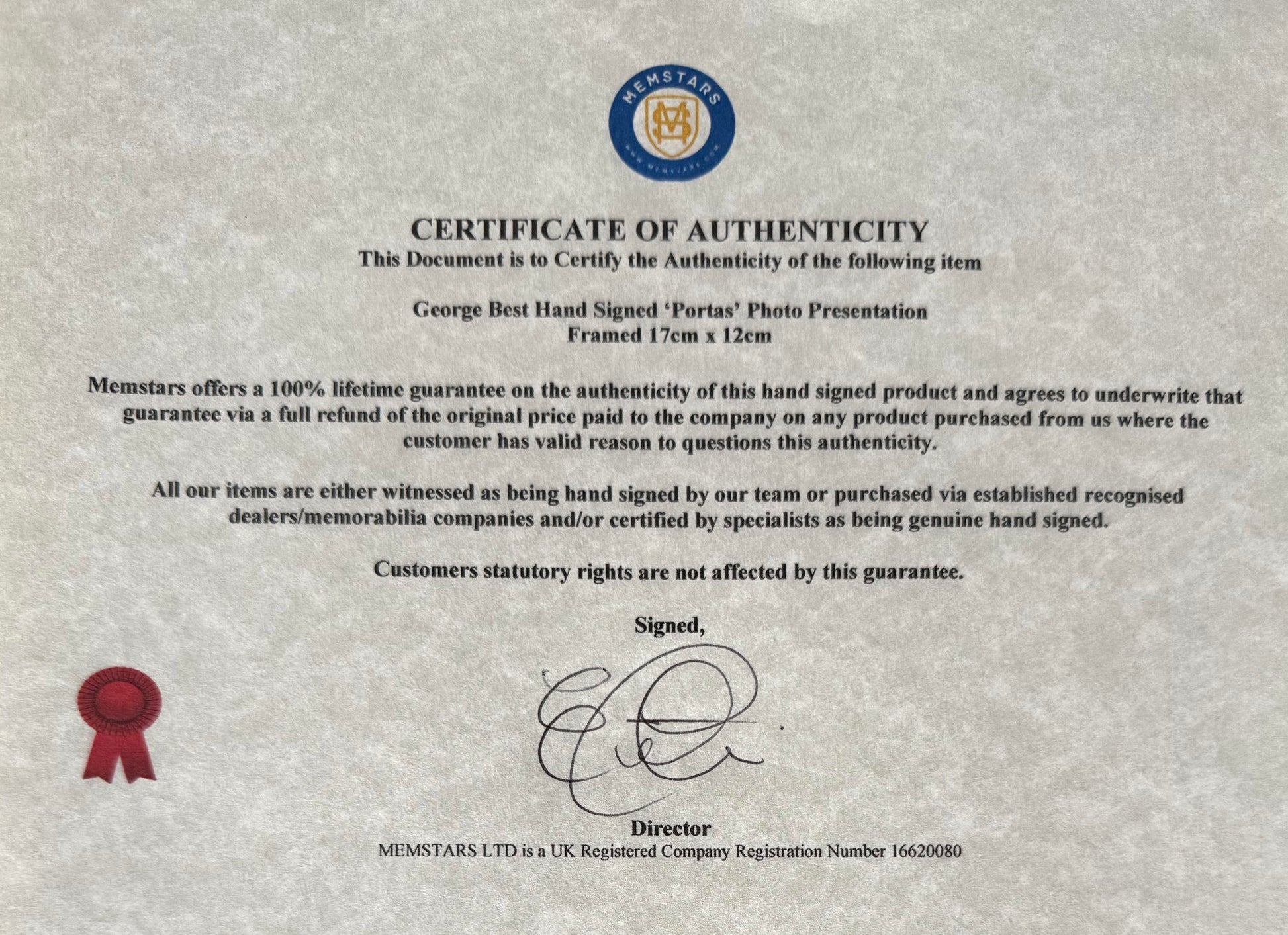 This would make the most amazing gift or grace any room in the house or office. Original George Best autographs are becoming highly desirable and collectable. This is a superb example of a guaranteed genuine George Best autograph on a 'Portas' card, with mounted photo presentation.