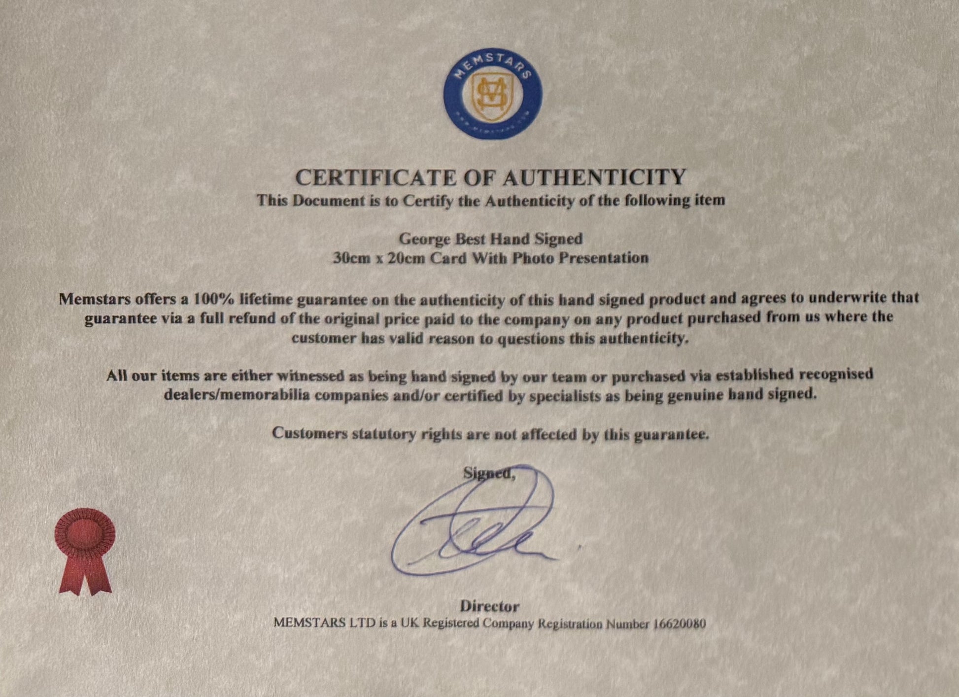 This would make the most amazing gift or grace any room in the house or office. Original George Best autographs are becoming highly desirable and collectable. This is a superb example of a guaranteed genuine George Best autograph on a 'Portas' card, with mounted photo presentation.