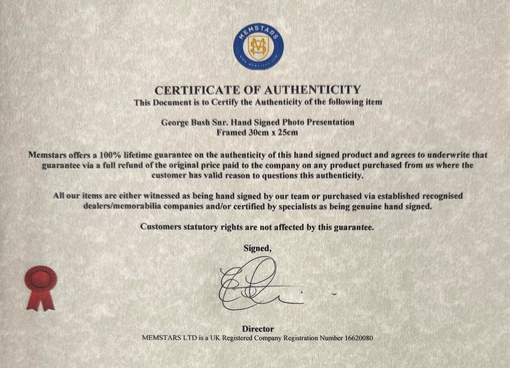 George Bush Senior – 41st President of The United States - Stunning 100% Guaranteed Hand Signed Framed and Mounted Photo Presentation (30cm X 25cm) - With COA (Certificate of Authenticity).