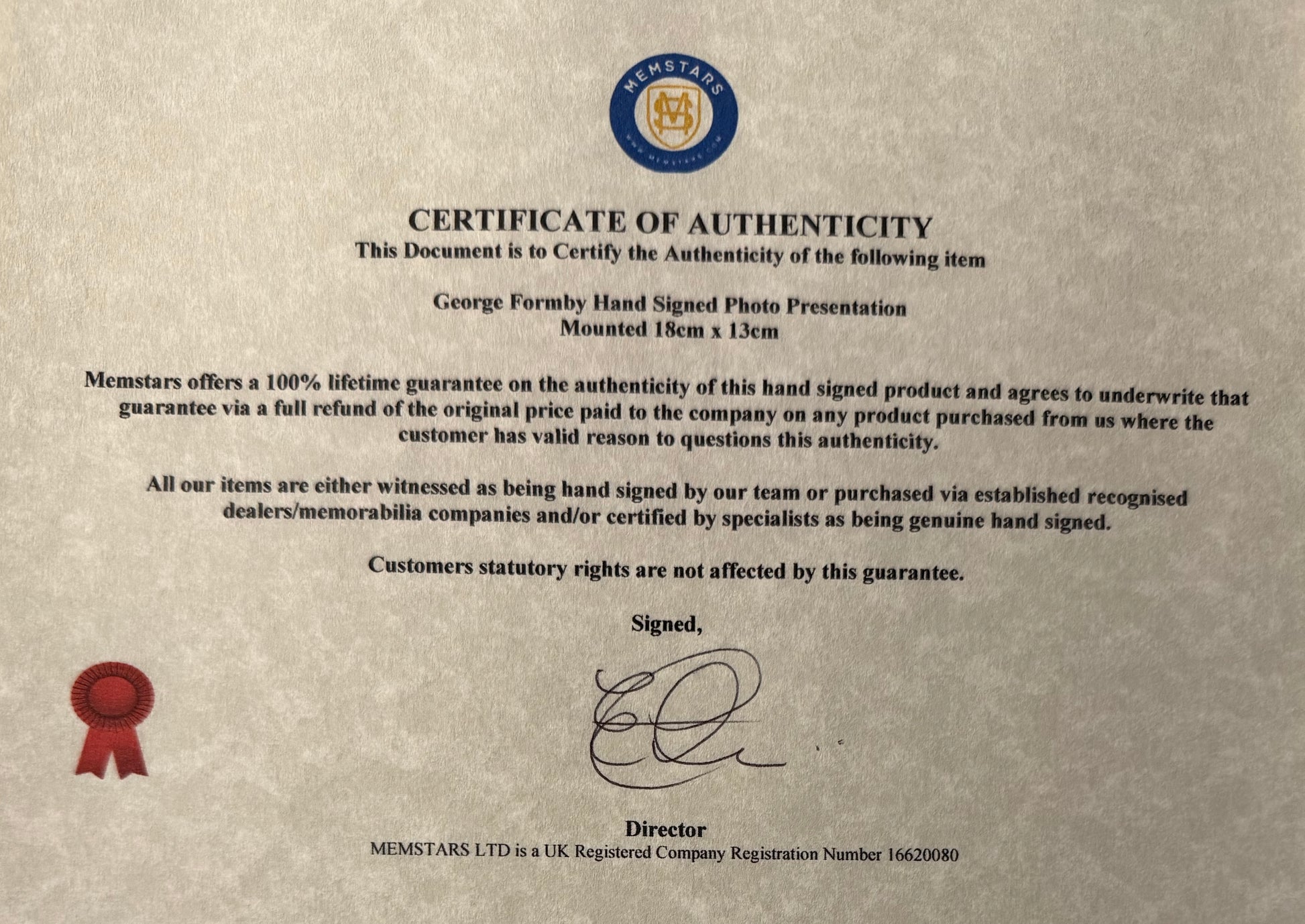 We only sell 100% genuine Hand Signed authentic memorabilia with Certificates of Authenticity from us and/or AFTAL members.