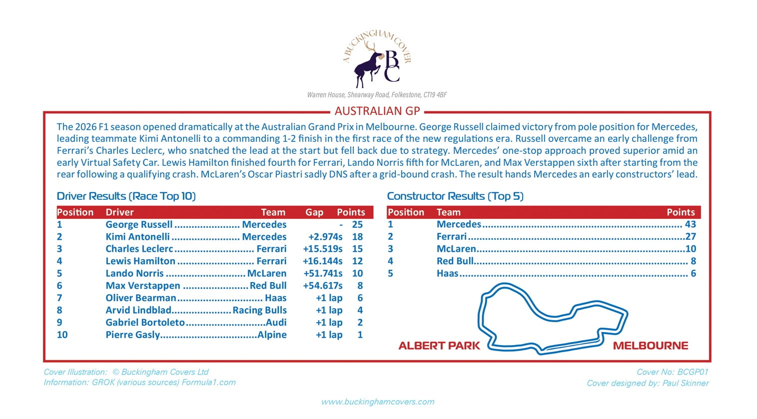 Whether you’re a Mercedes supporter celebrating the 1-2, a Ferrari fan reliving Leclerc’s podium fight, or simply a collector who loves owning the story of each race weekend, this is your chance to hold a tangible piece of the 2026 season opener.
