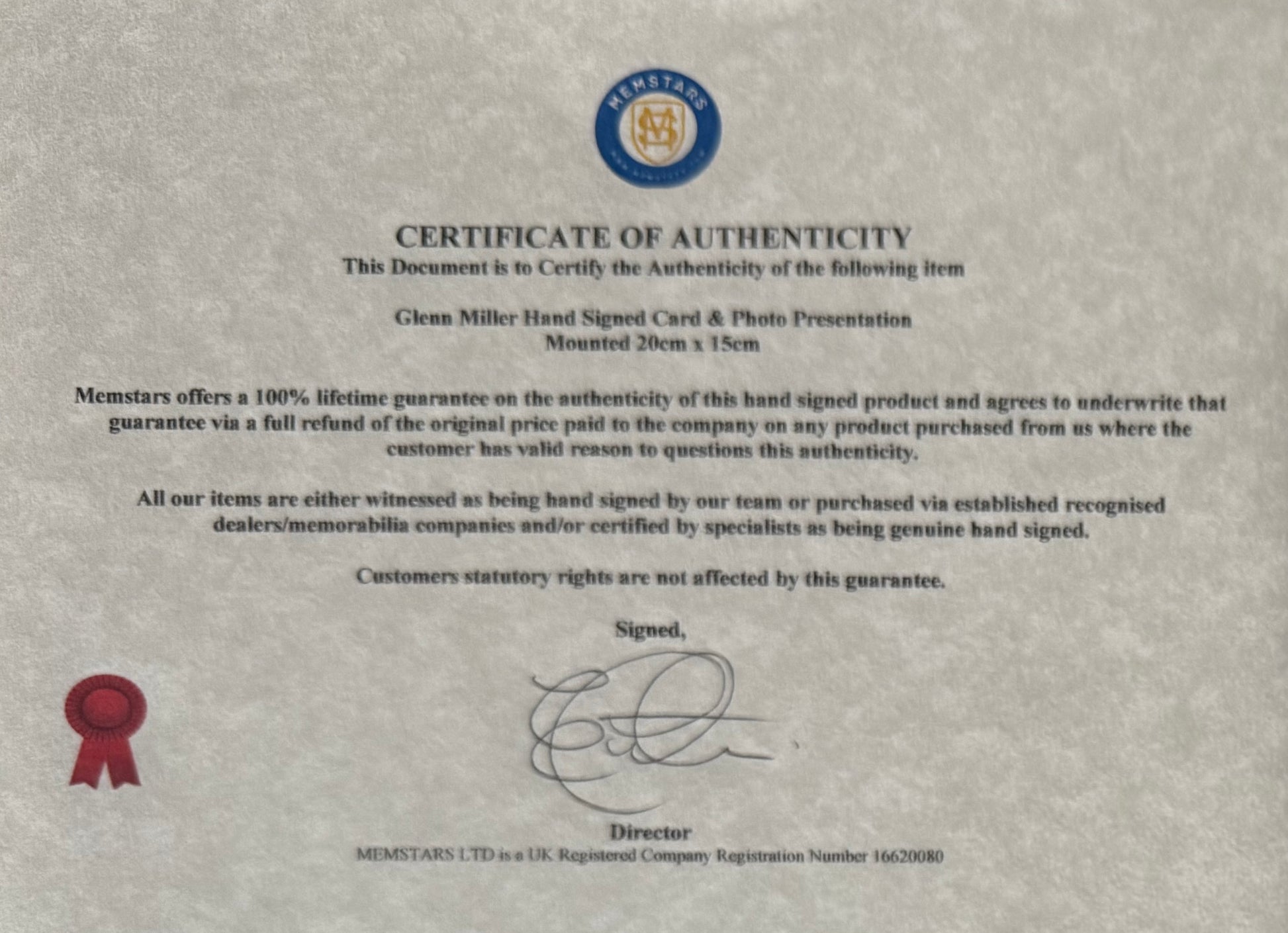 We only sell 100% genuine HAND SIGNED authentic memorabilia with Certificates of Authenticity.