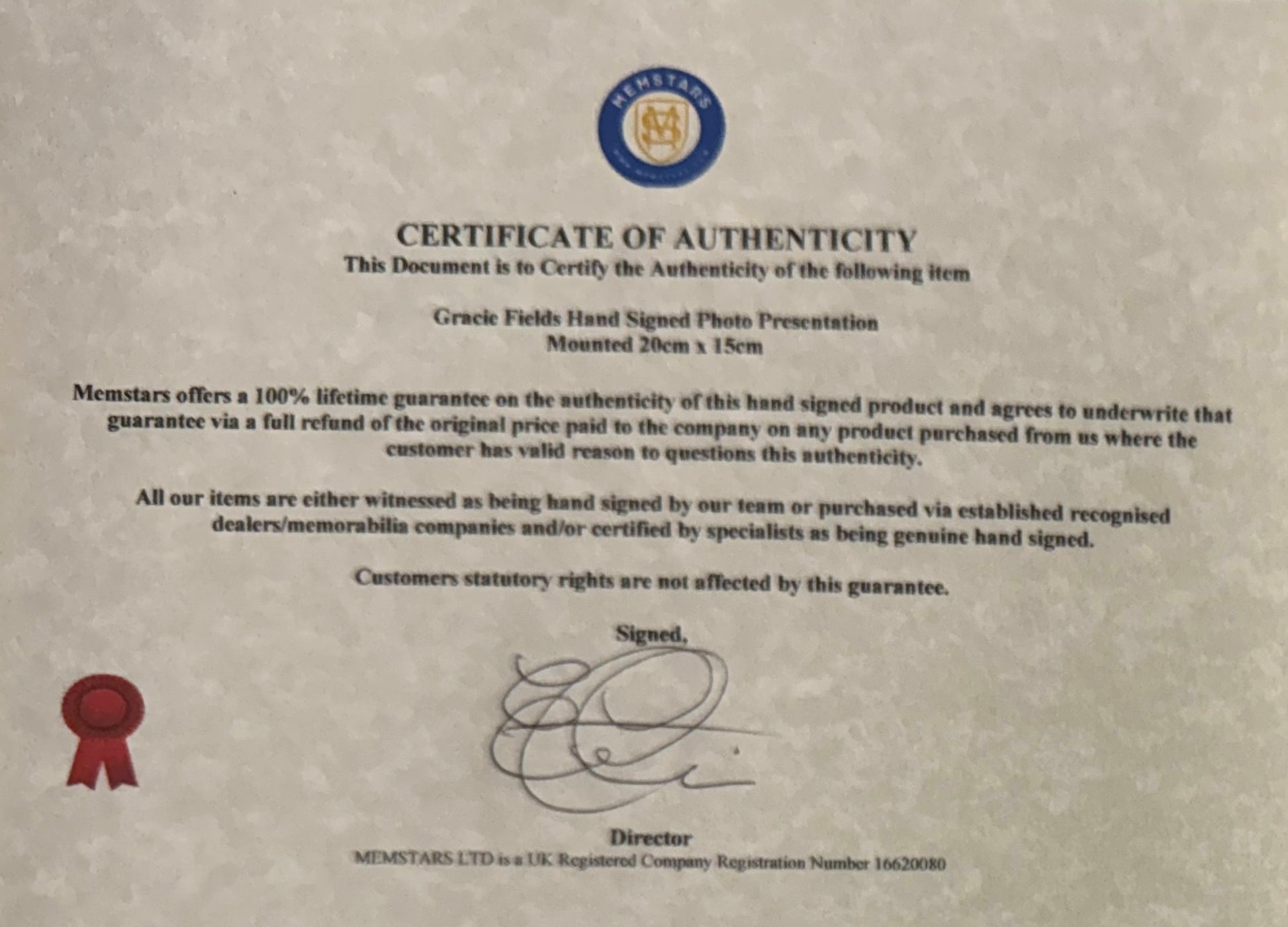 We only sell 100% genuine HAND SIGNED authentic memorabilia with Certificates of Authenticity.