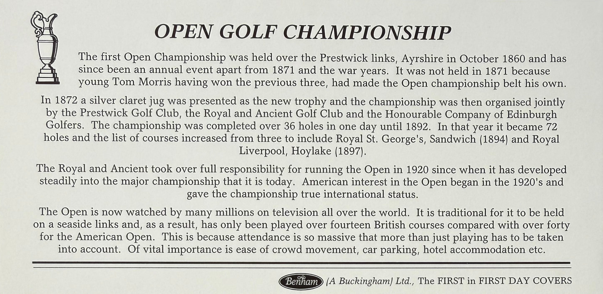 Greg Norman, Australian Golf Legend, 100% Guaranteed Hand Signed, Extremely Rare Original 1994 ‘Open’ Championship First Day Cover - With COA - Certificate of Authenticity.