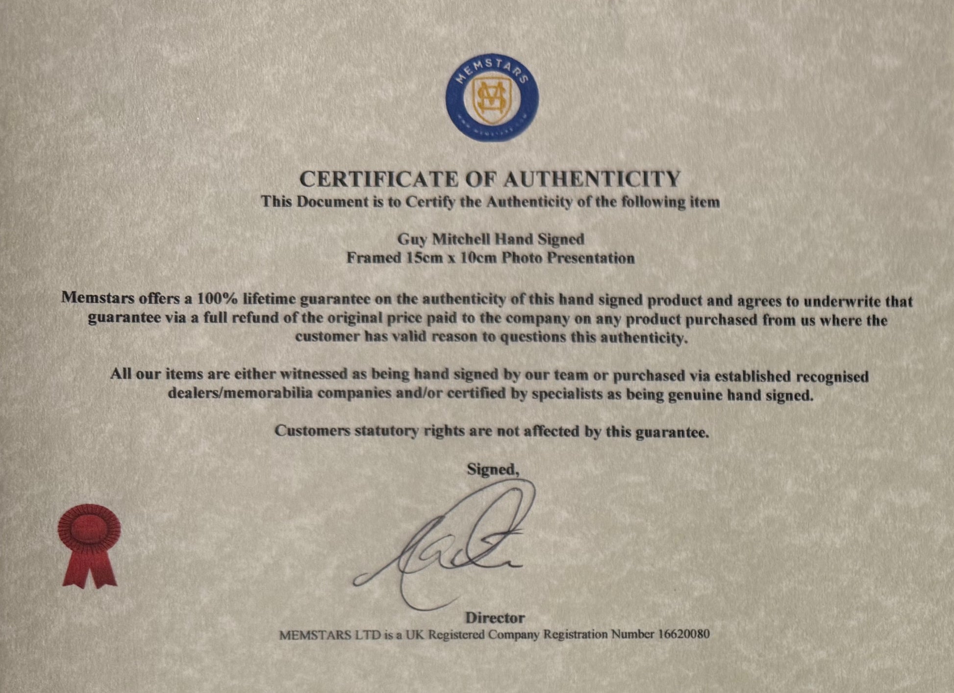 We only sell 100% genuine HAND SIGNED authentic memorabilia with Certificates of Authenticity underwritten by us.