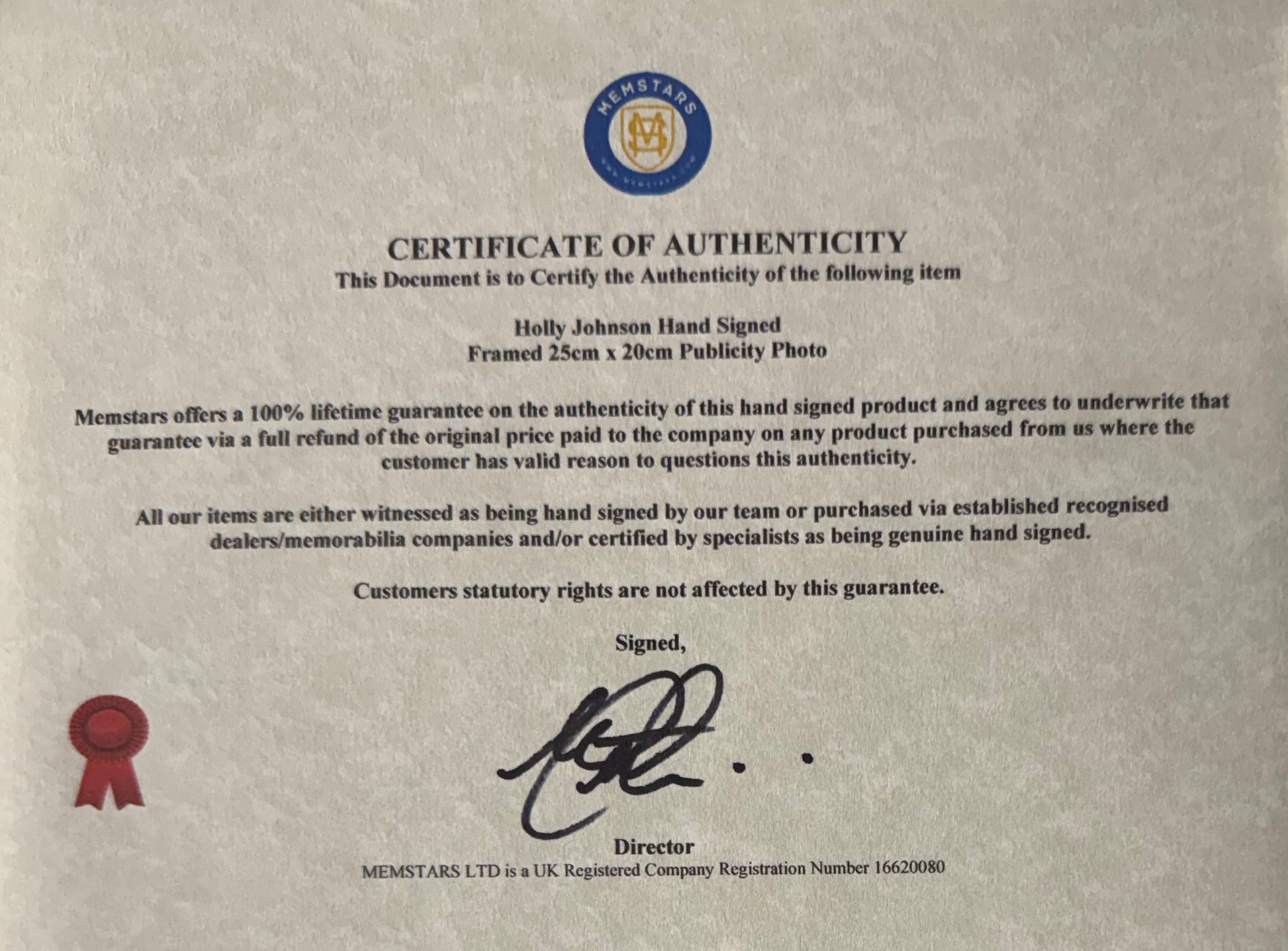 We only sell 100% genuine HAND SIGNED authentic memorabilia with Certificate's of Authenticity.