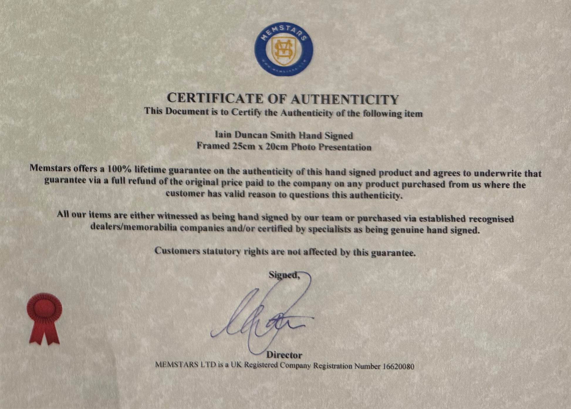 An amazing collectible asset that can also be enjoyed by any Iain Duncan Smith, political, history or general collector.
