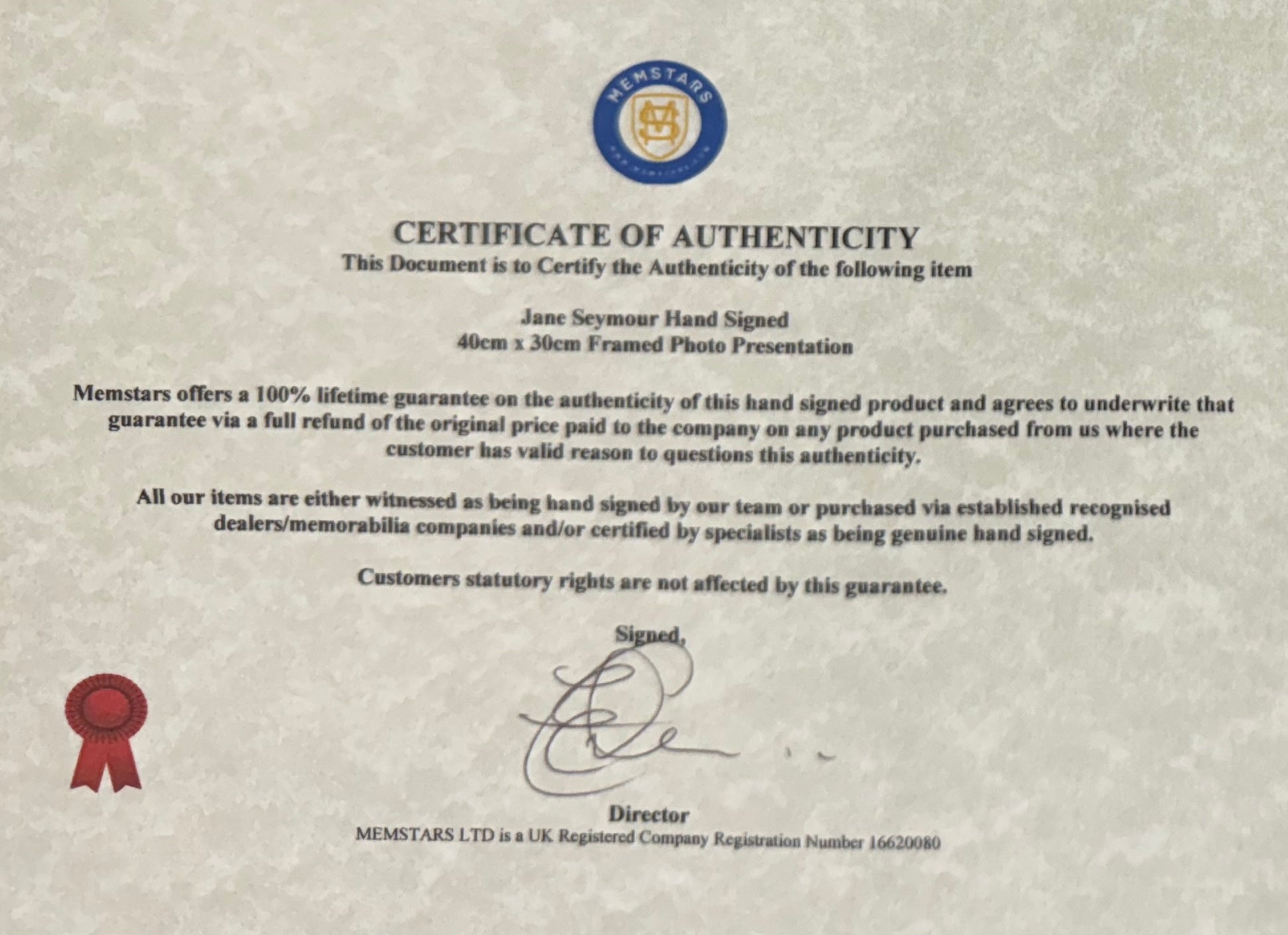 We only sell 100% genuine HAND SIGNED authentic memorabilia with Certificates of Authenticity.