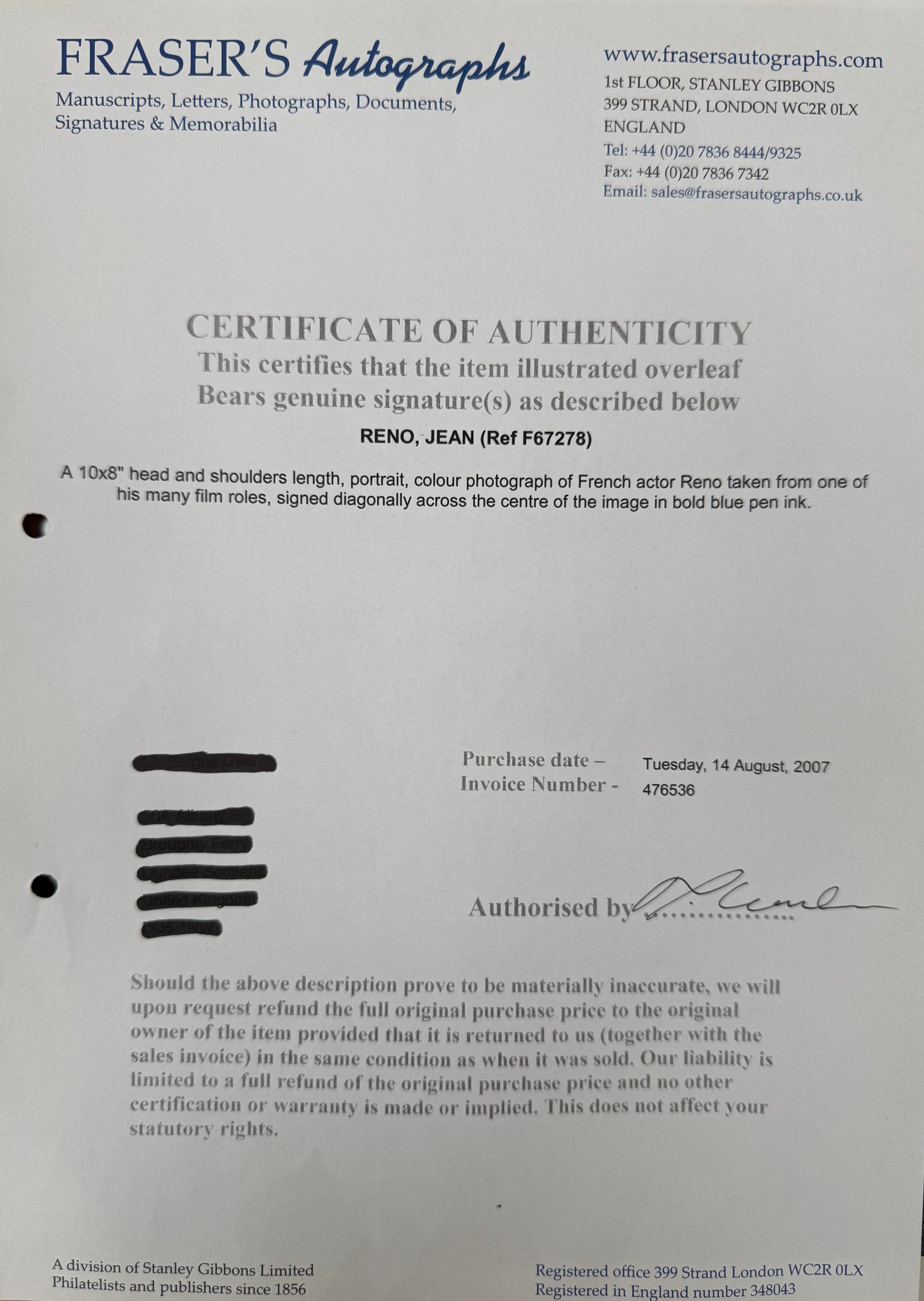 We ONLY supply 100% Guaranteed Hand Signed and certificated products.