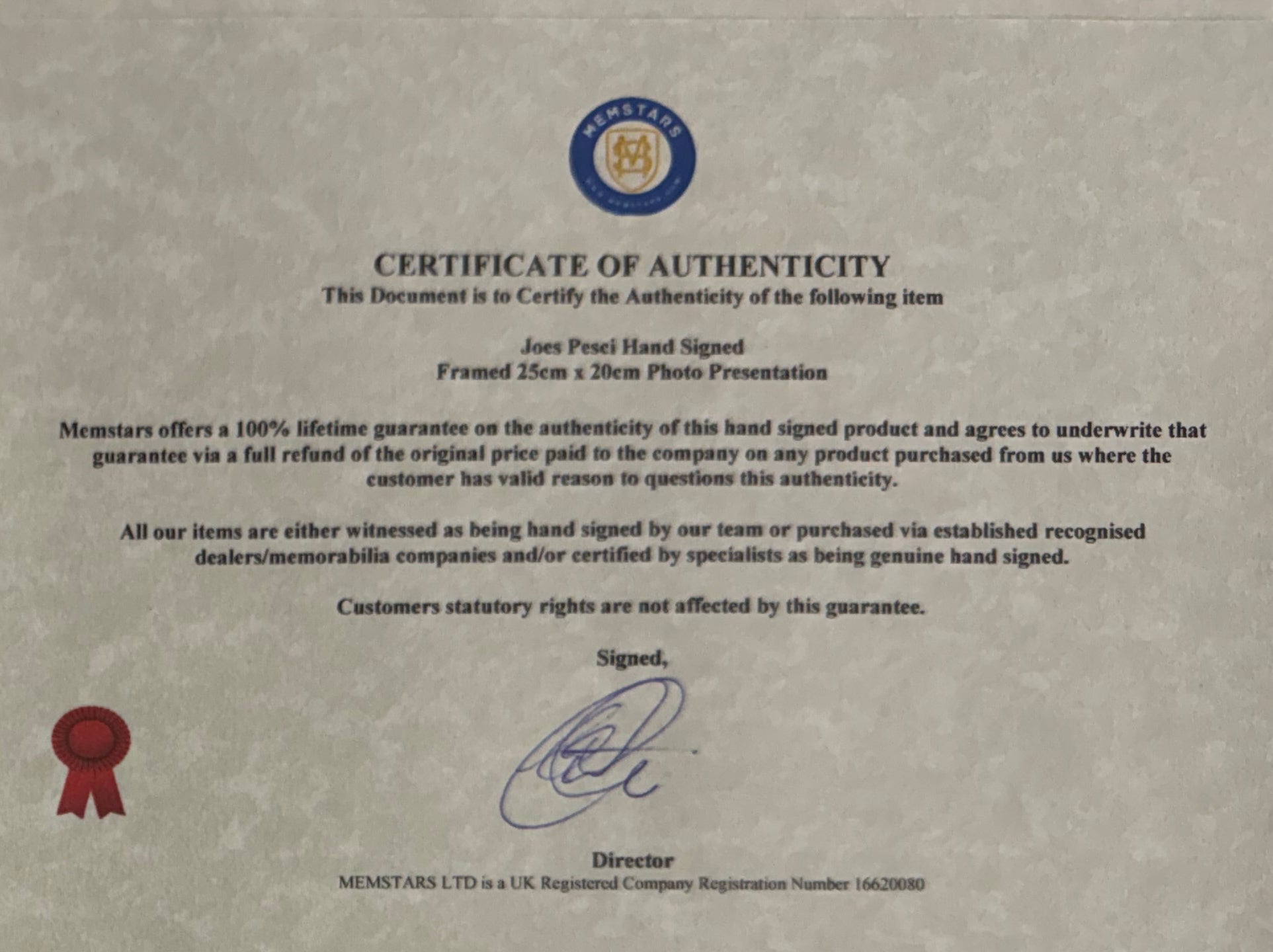 An amazing collectible asset that can also be enjoyed by any Joe Pesci, film fan, or general collector.