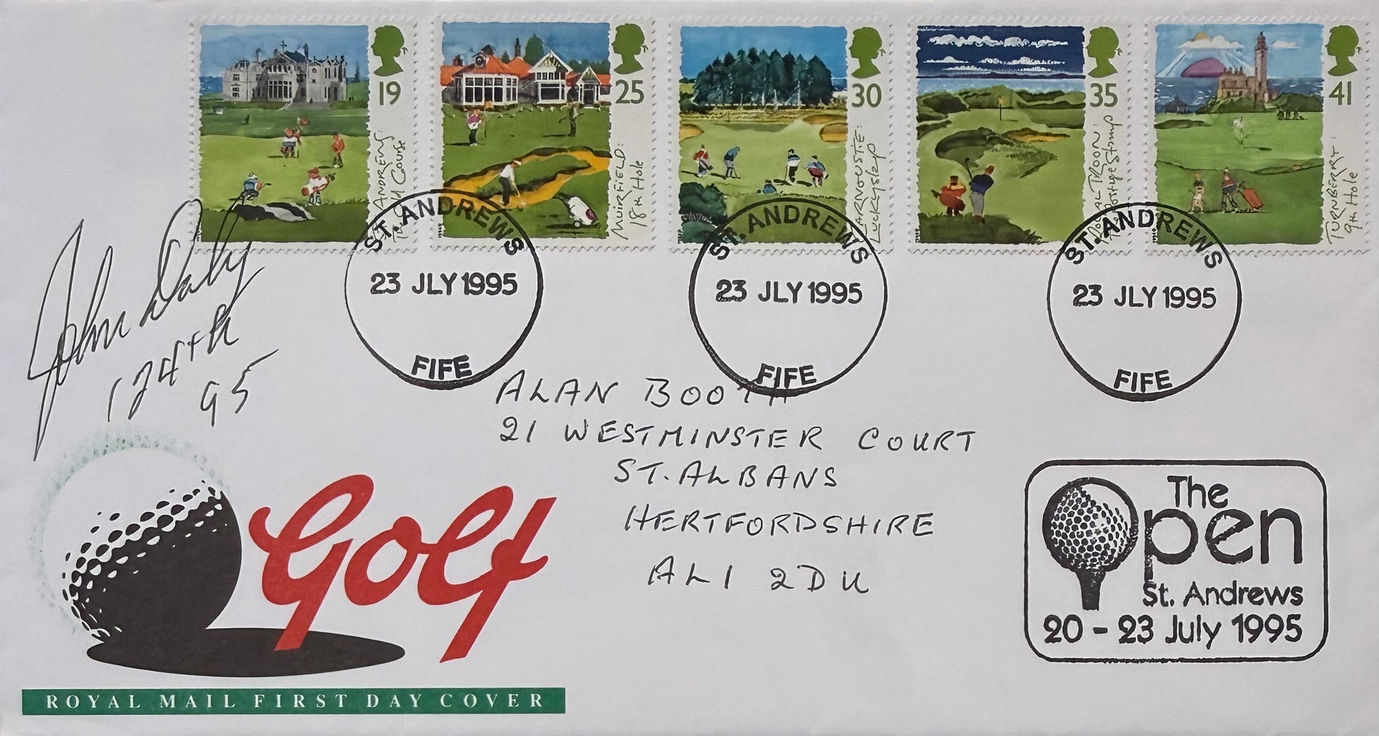 John Daly, American Golfing Legend, 100% Guaranteed Hand Signed, Extremely Rare Original 1995 ‘Open’ Championship First Day Cover - With COA - Certificate of Authenticity.