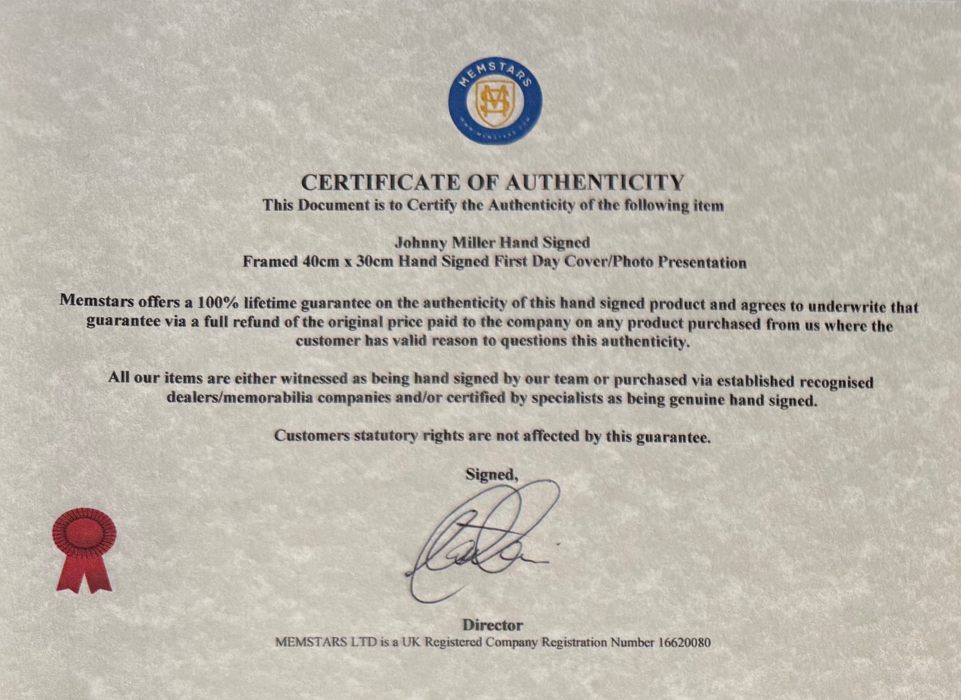 We only sell 100% genuine HAND SIGNED authentic memorabilia with Certificates of Authenticity underwritten by us.