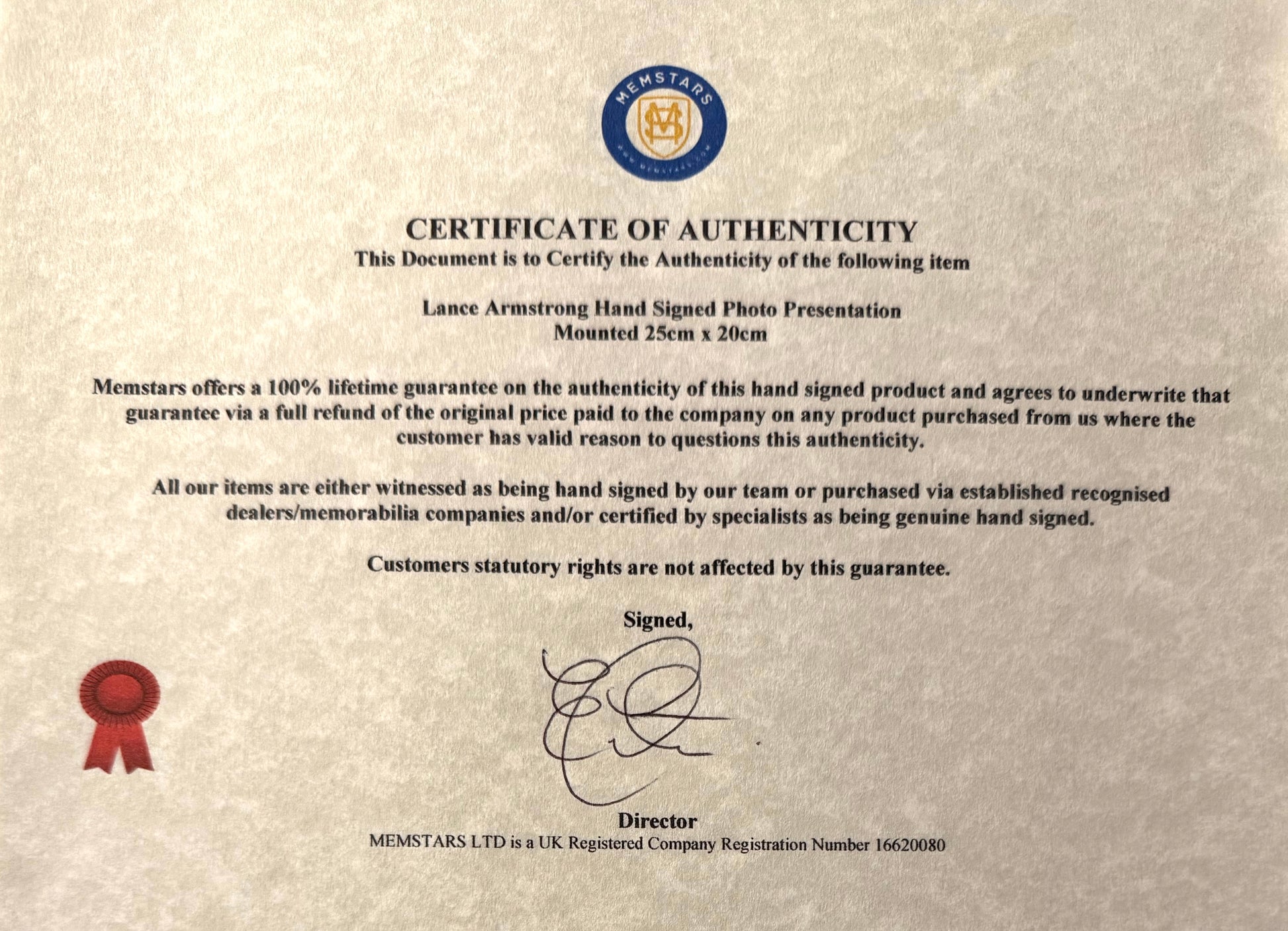 We only sell 100% genuine Hand Signed authentic memorabilia with Certificates of Authenticity from us and/or AFTAL members.