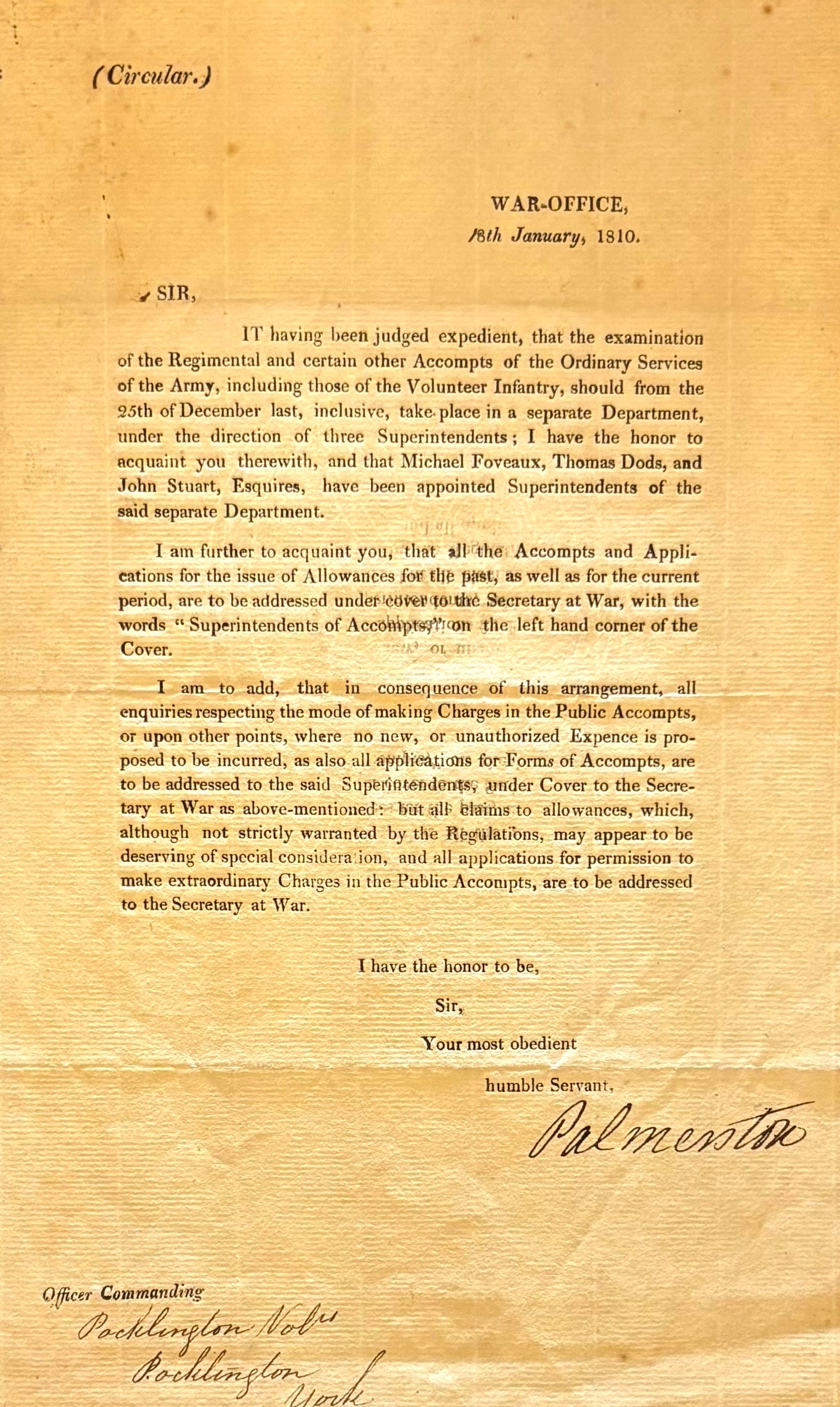 Lord Palmerston, Former British Prime Minister, Hand Signed War Office Letter Presentation & COA