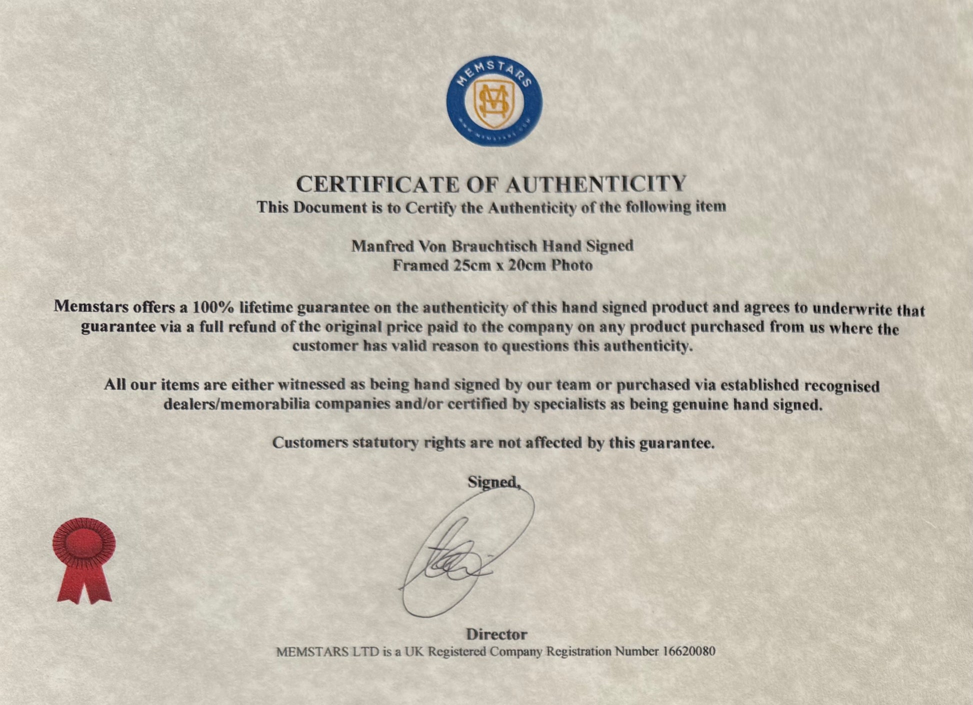 We ONLY sell 100% Guaranteed Hand signed items that come complete with a certificate certifying it as being genuine hand signed.