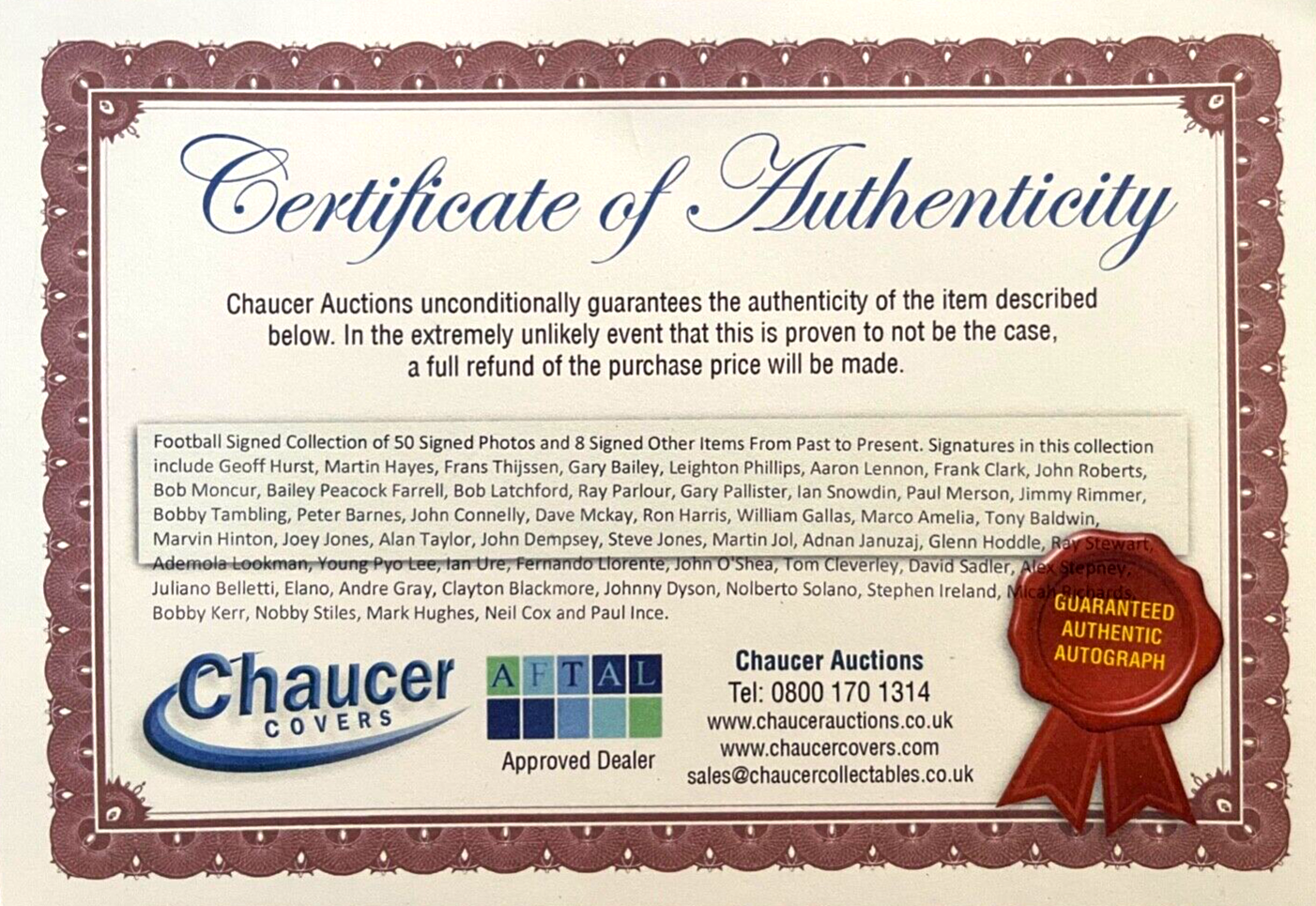 We only sell 100% genuine HAND SIGNED Authentic Memorabilia Guaranteed by us.