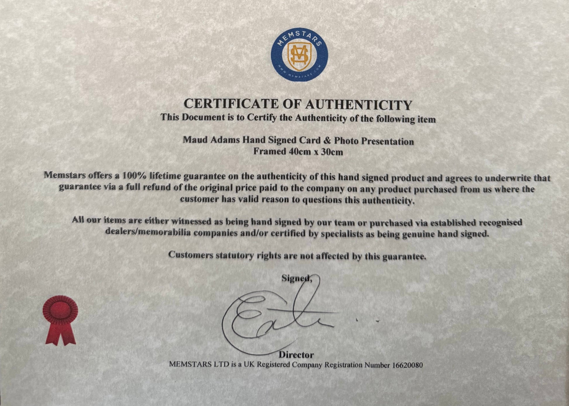 We only sell 100% genuine HAND SIGNED authentic memorabilia with Certificates of Authenticity.
