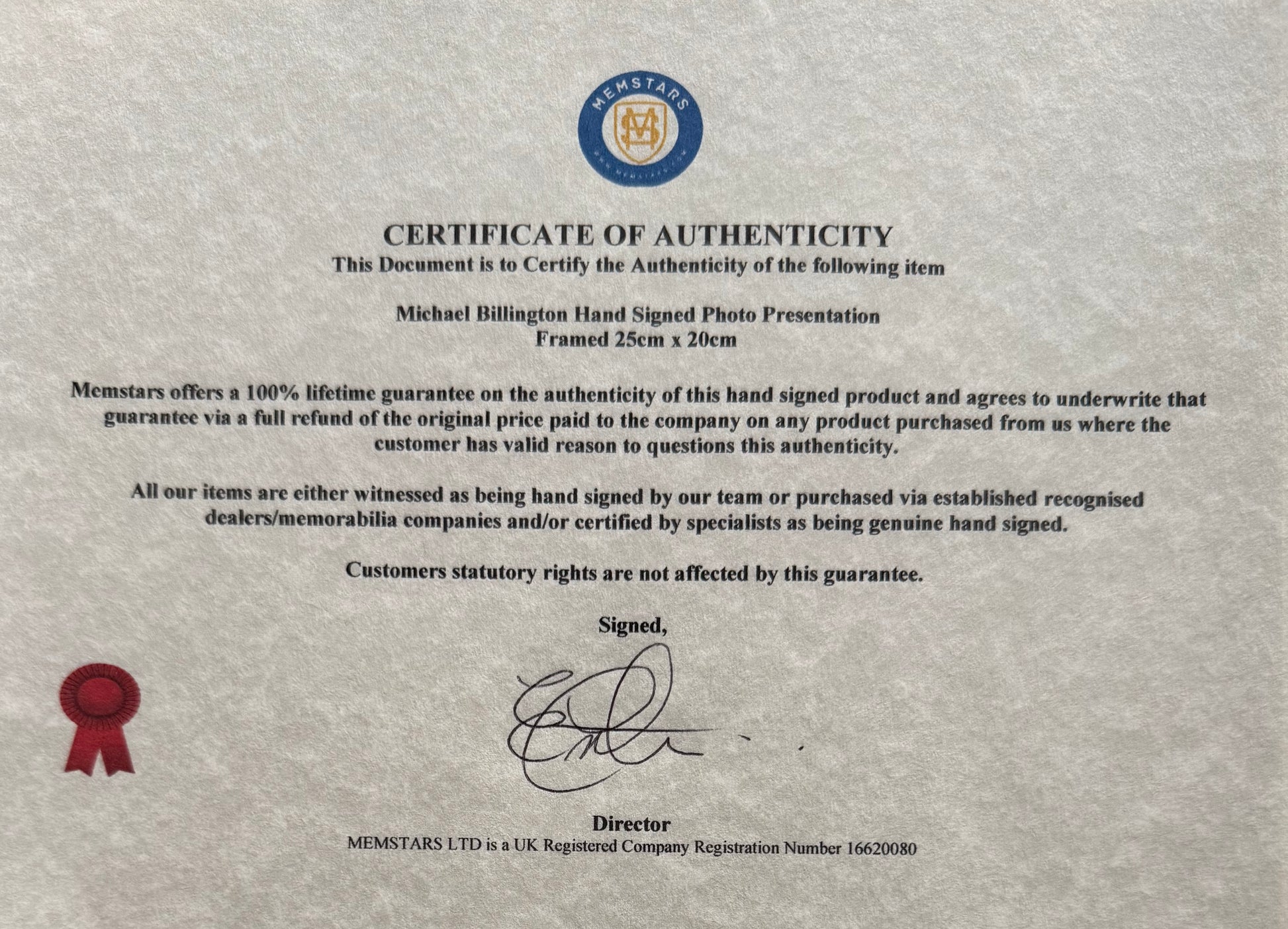 We only sell 100% genuine HAND SIGNED authentic memorabilia with Certificates of Authenticity.