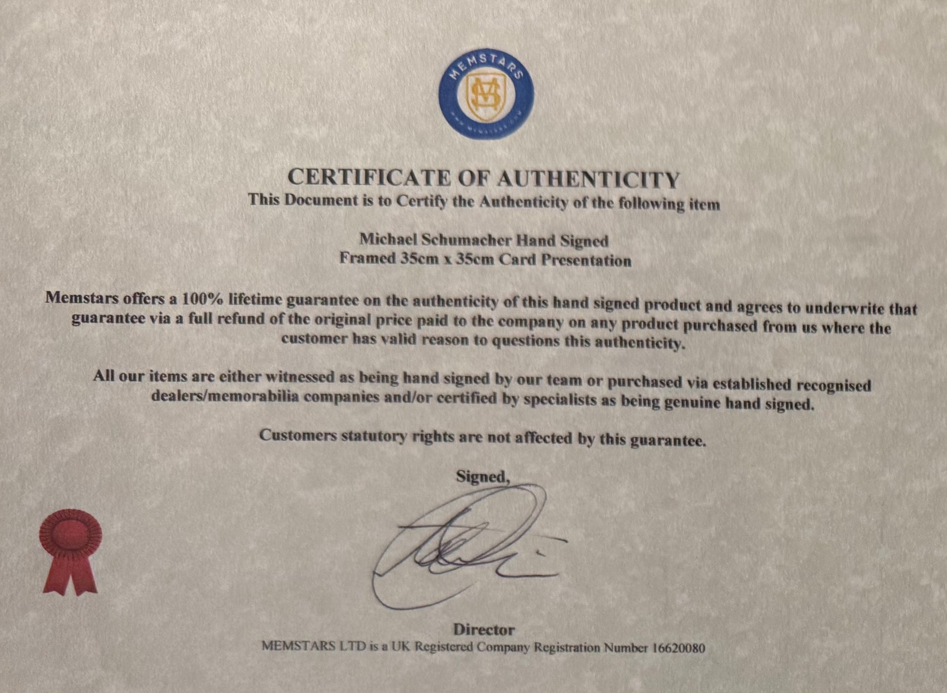 We only sell 100% genuine HAND SIGNED authentic memorabilia with Certificates of Authenticity.