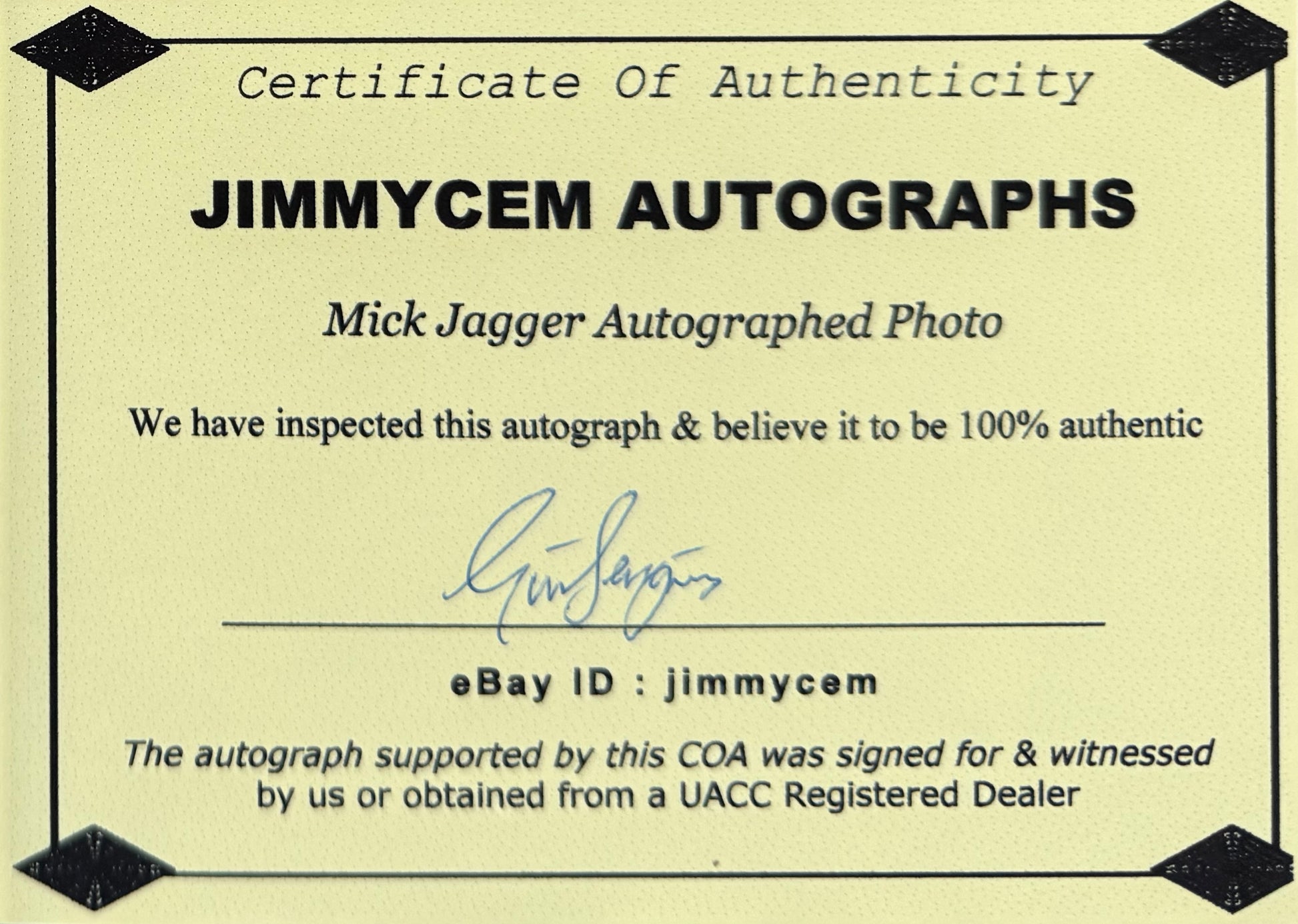 Mick Jagger, Rolling Stones - Musician - 100% Guaranteed Hand Signed and Framed (30cm x 25cm) Photo with COA - Certificate of Authenticity.