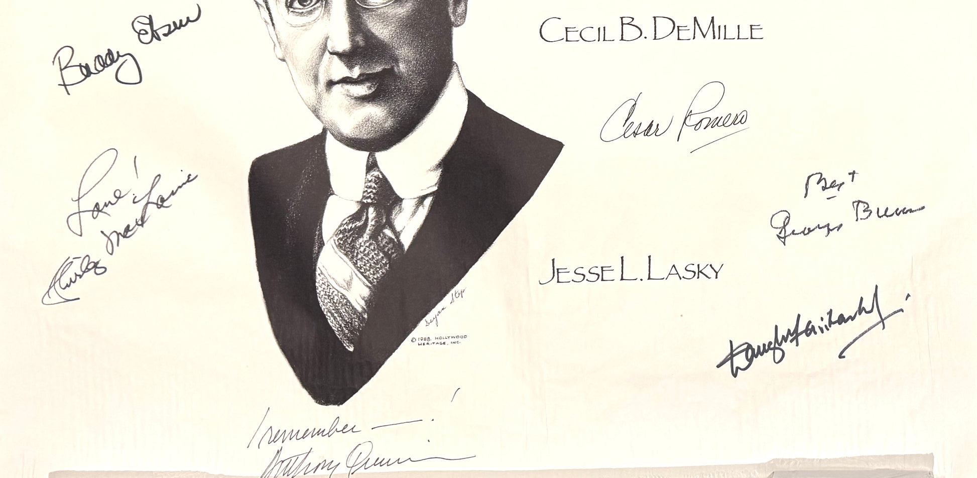 Hollywood Poster / Signatures, Limited Edition, hand numbered (85 of 126 on the reverse) poster featuring portraits by artist Deyan Step of the three founders of Paramount Pictures: Adolph Zukor, Cecil B. DeMille, and Jesse Lasky.