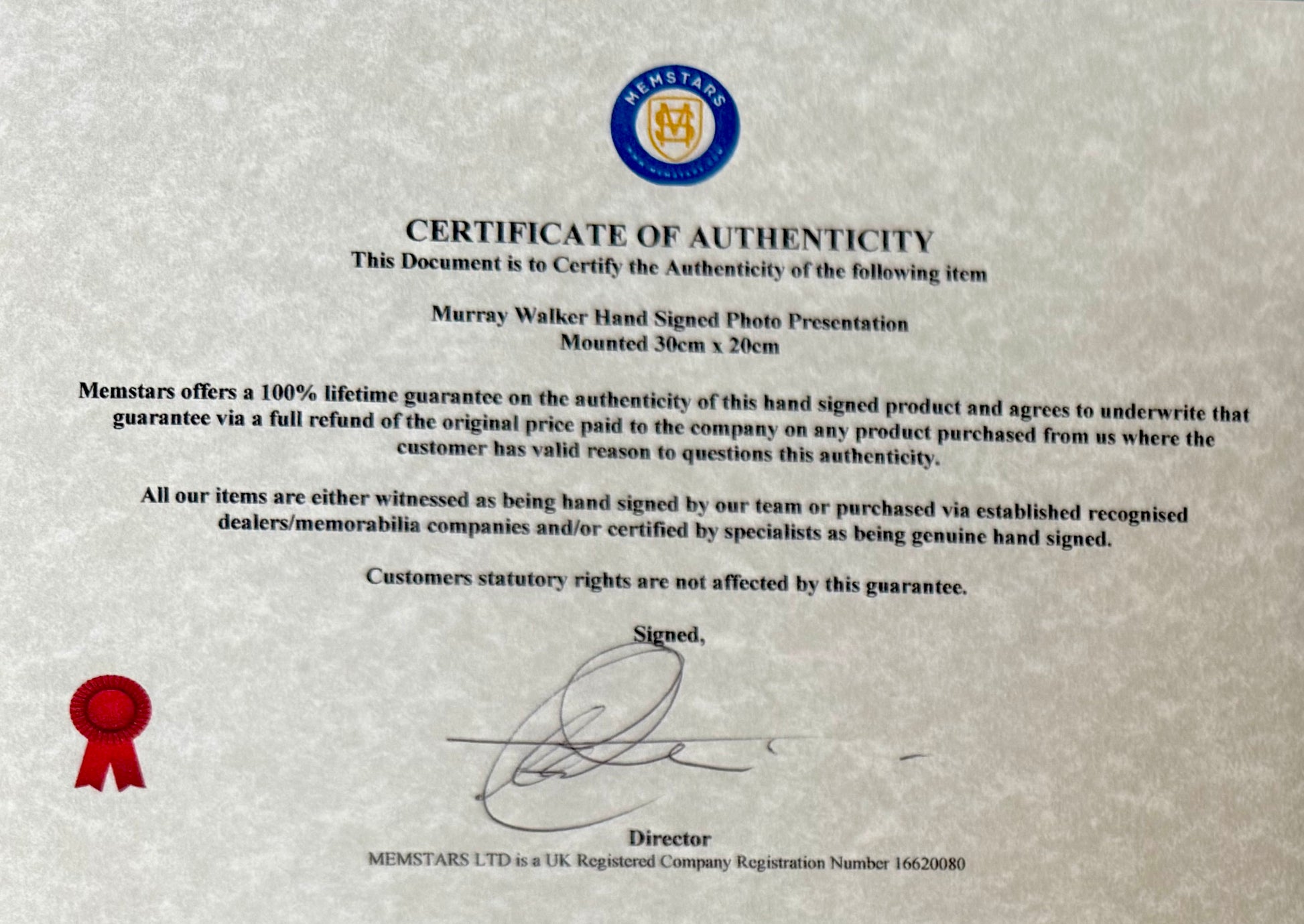 Quality Wood Framed (25cm x 20cm) Super Rare Murray Walker 100% Guaranteed Hand Signed Photo presentation with COA.
