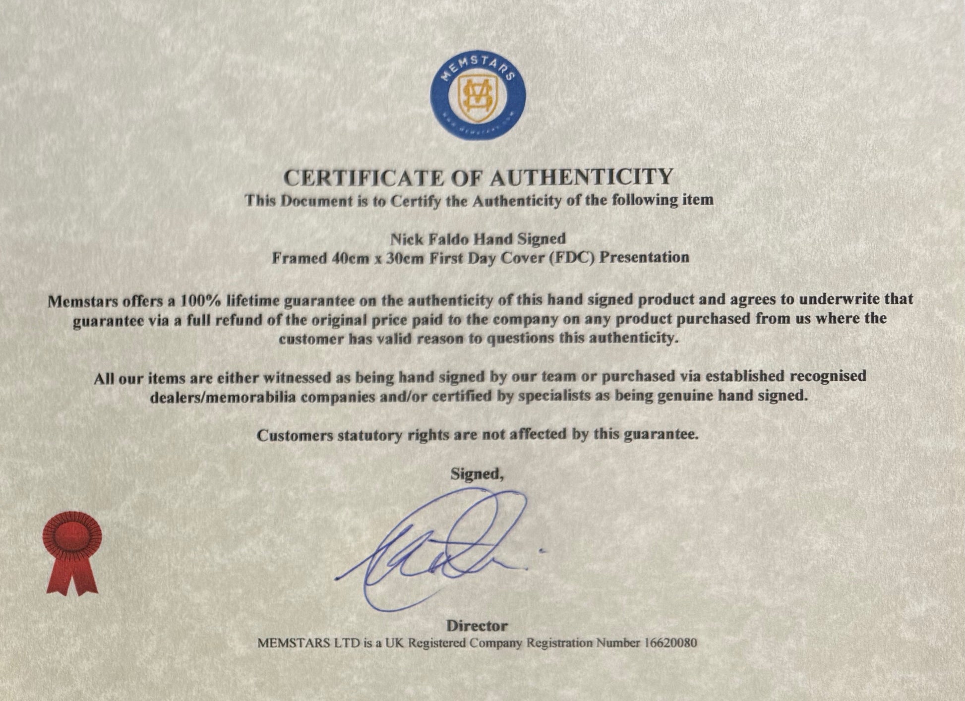We only sell 100% genuine HAND SIGNED authentic memorabilia with Certificates of Authenticity underwritten by us.