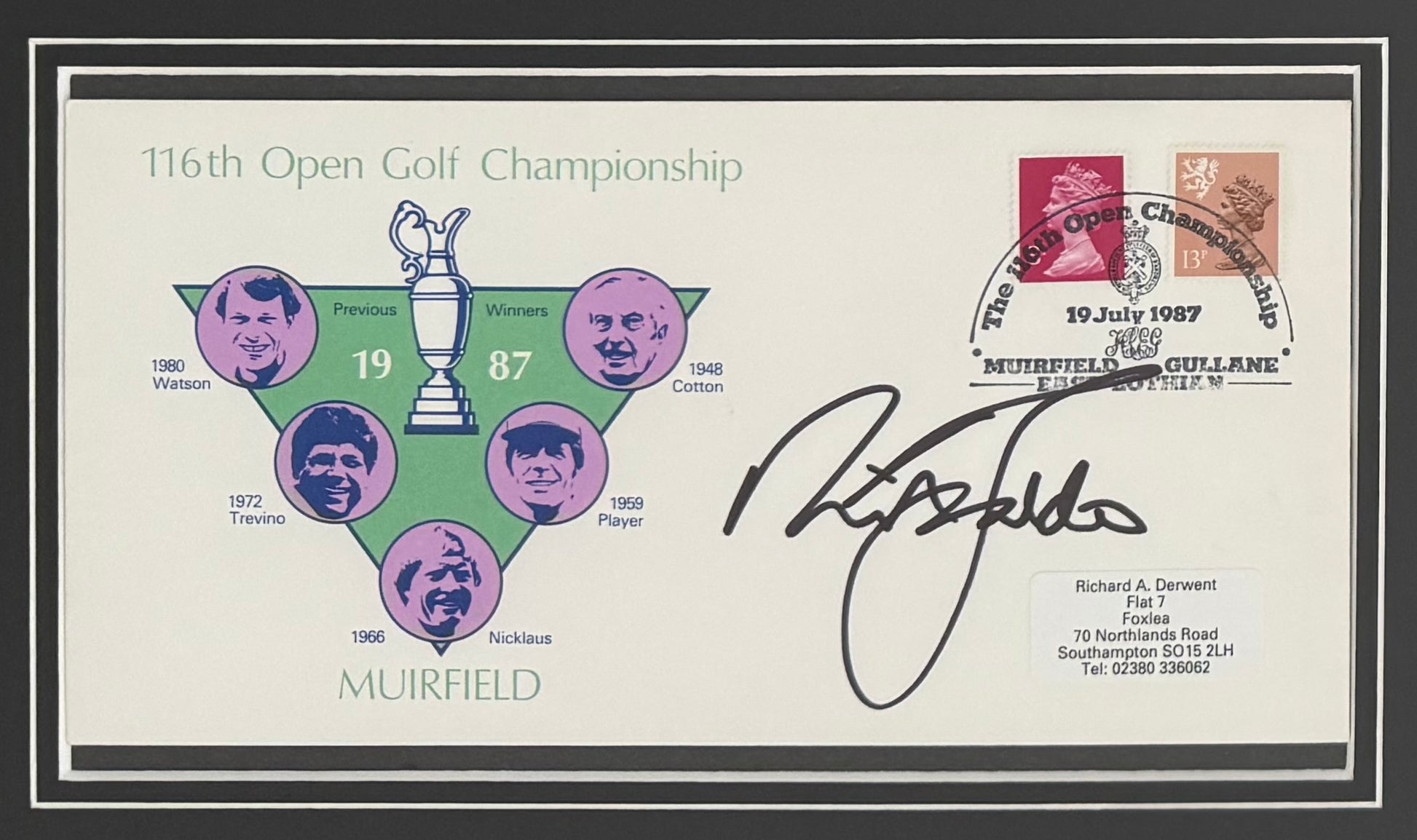 Nick Faldo, British Golfing Legend, 100% Guaranteed Hand Signed, Extremely Rare Original 1987 ‘Open’ Championship First Day Cover - With COA - Certificate of Authenticity.