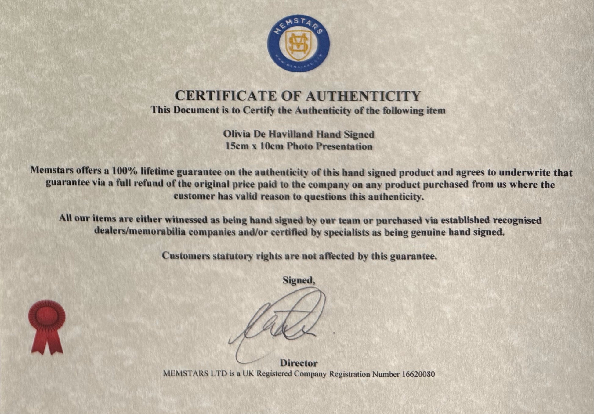 We only sell 100% genuine HAND SIGNED authentic memorabilia with Certificates of Authenticity.