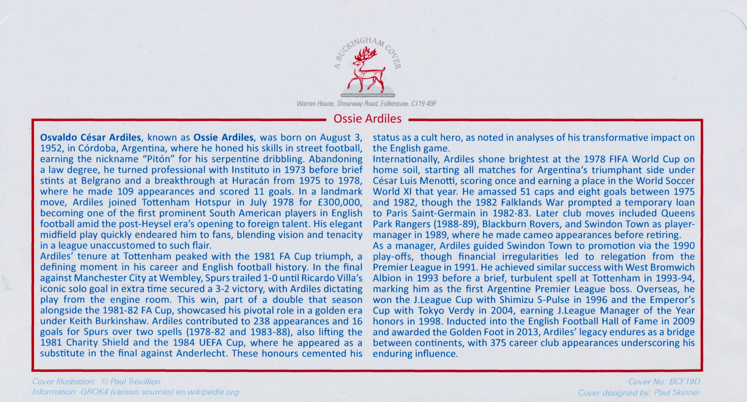 Ossie Ardiles - Spurs Legend - 100% Original Genuine Hand Signed ‘Buckingham’ Limited Edition (only 75 produced globally) First Day Cover (FDC) - With Certificate of Authenticity (COA).