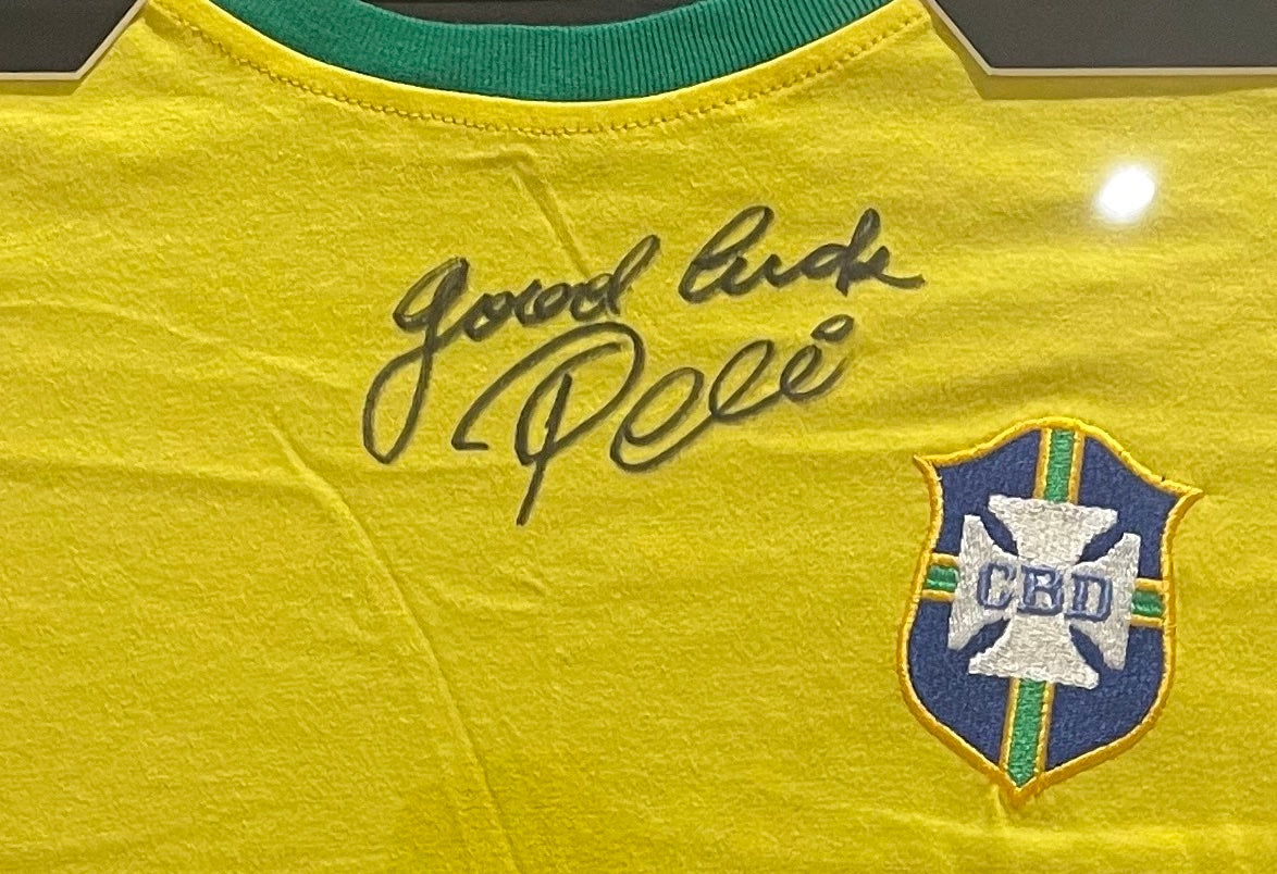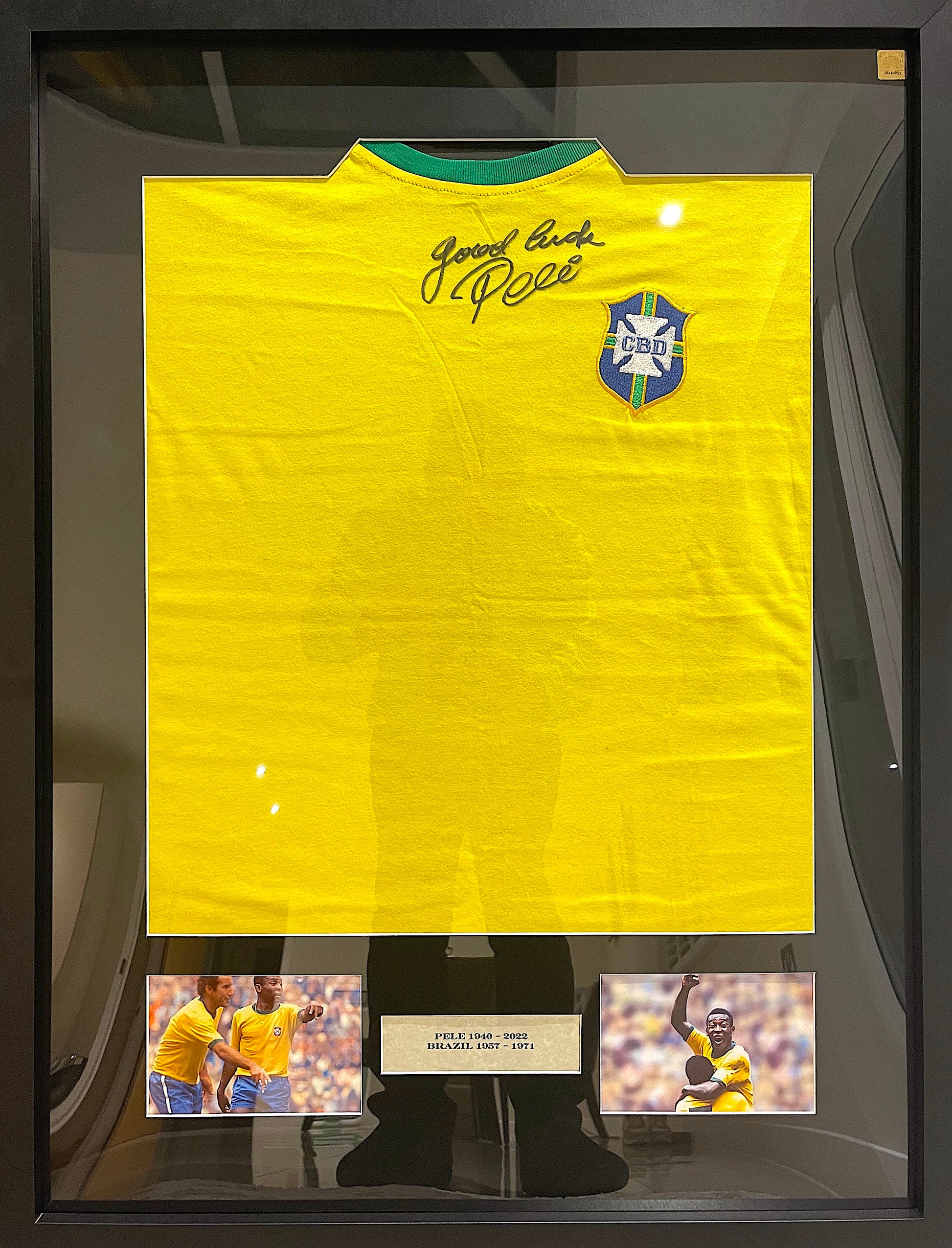 Pele, Hand Signed Framed Brazil Shirt With COA